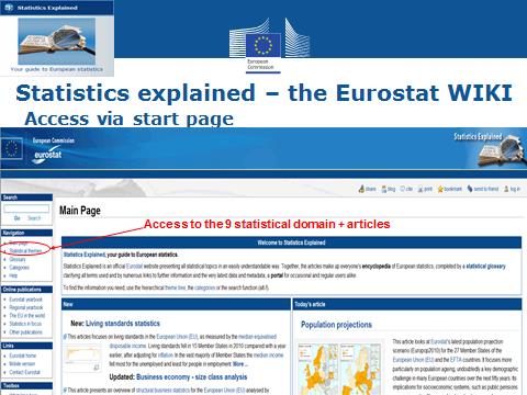 5. Wiki “Statistics Explained” loodst je door database. Deze wiki is het beste startpunt om data te zoeken. Je kan zoeken op onderwerp en de wiki geeft tips om aan de slag te gaan met de databank. Alle artikelen zijn opgebouwd als wikipedia-pagina’s. Enkel medewerkers van Eurostat kunnen pagina’s toevoegen, dus de gegevens zijn betrouwbaar. In de toekomst zal deze info ook meer en meer beschikbaar worden gesteld in het Nederlands.