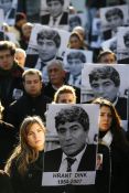 Een rechtbank in Istanbul heeft een Turk maandag tot 23 jaar cel veroordeeld voor de moord op de Turks-Armeense journalist Hrant Dink in 2007. Dat heeft het Turkse staatspersbureau Anatolia maandag gemeld. De veroordeelde man was 17 jaar oud en werkloos toen hij Dink ombracht. Dink gaf leiding aan het blad Agos. Hij was omstreden en had veel vijanden omdat hij de massamoord op Armeniërs in de Eerste Wereldoorlog genocide noemde. Foto: Hollandse Hoogte / Arie Kievit