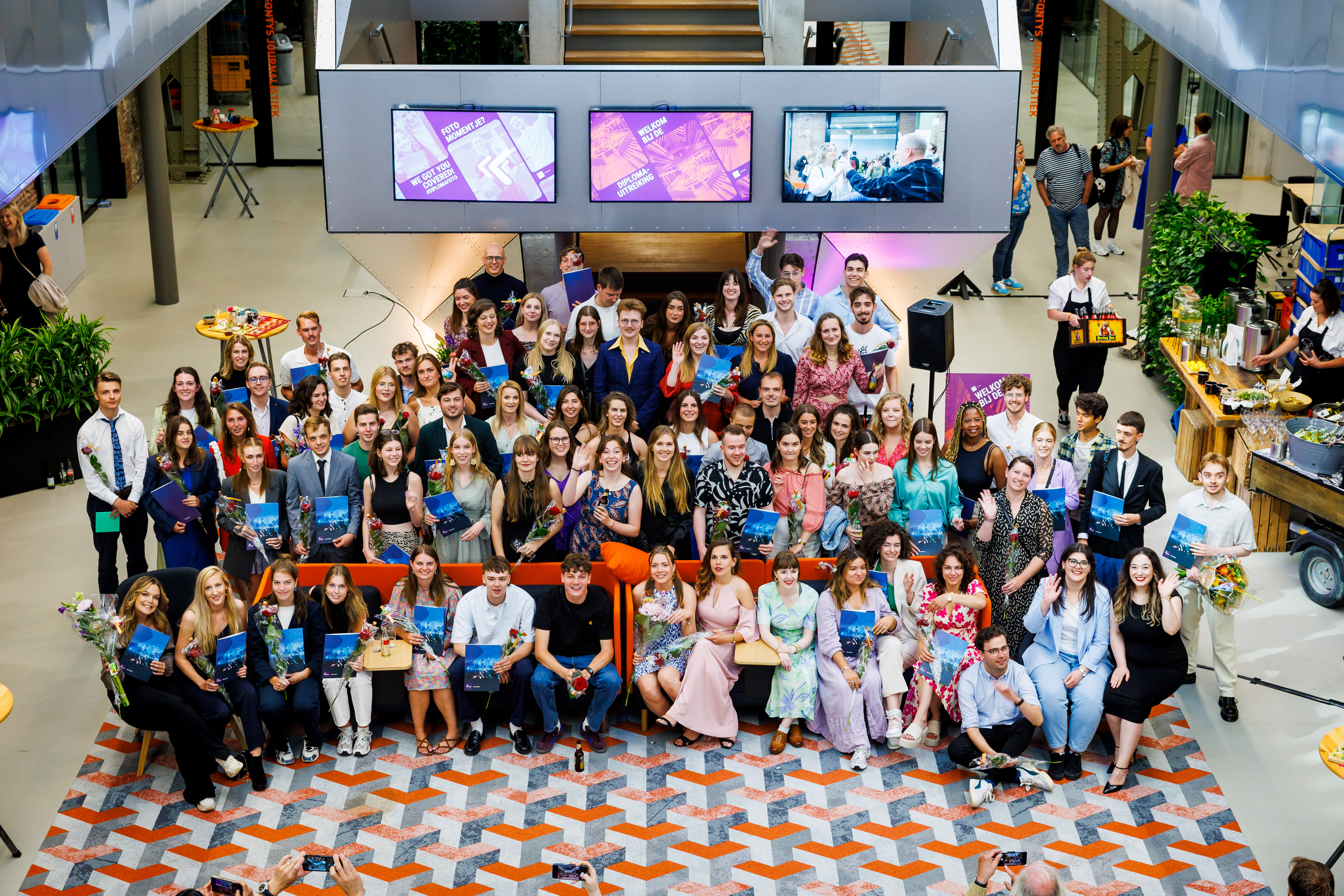 Nog nooit haalden 82 studenten tegelijk hun diploma op tijdens de uitreiking bij Fontys Journalistiek, afgelopen donderdag 13 juli, in Tilburg. Foto Jules van Iperen.