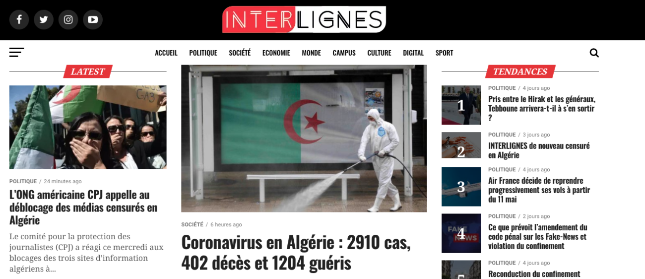 De getroffen sits zijn nieuwssite Maghreb Emergent, de site van het daaraan gelieerde radiostation Radiom en de nieuwssite Interlignes. Volgens persvrijheidsorganisatie CPJ zijn de blokkades een straf voor kritische berichtgeving over de wijze waarop de Algerijnse overheid de coronacrisis aanpakt.