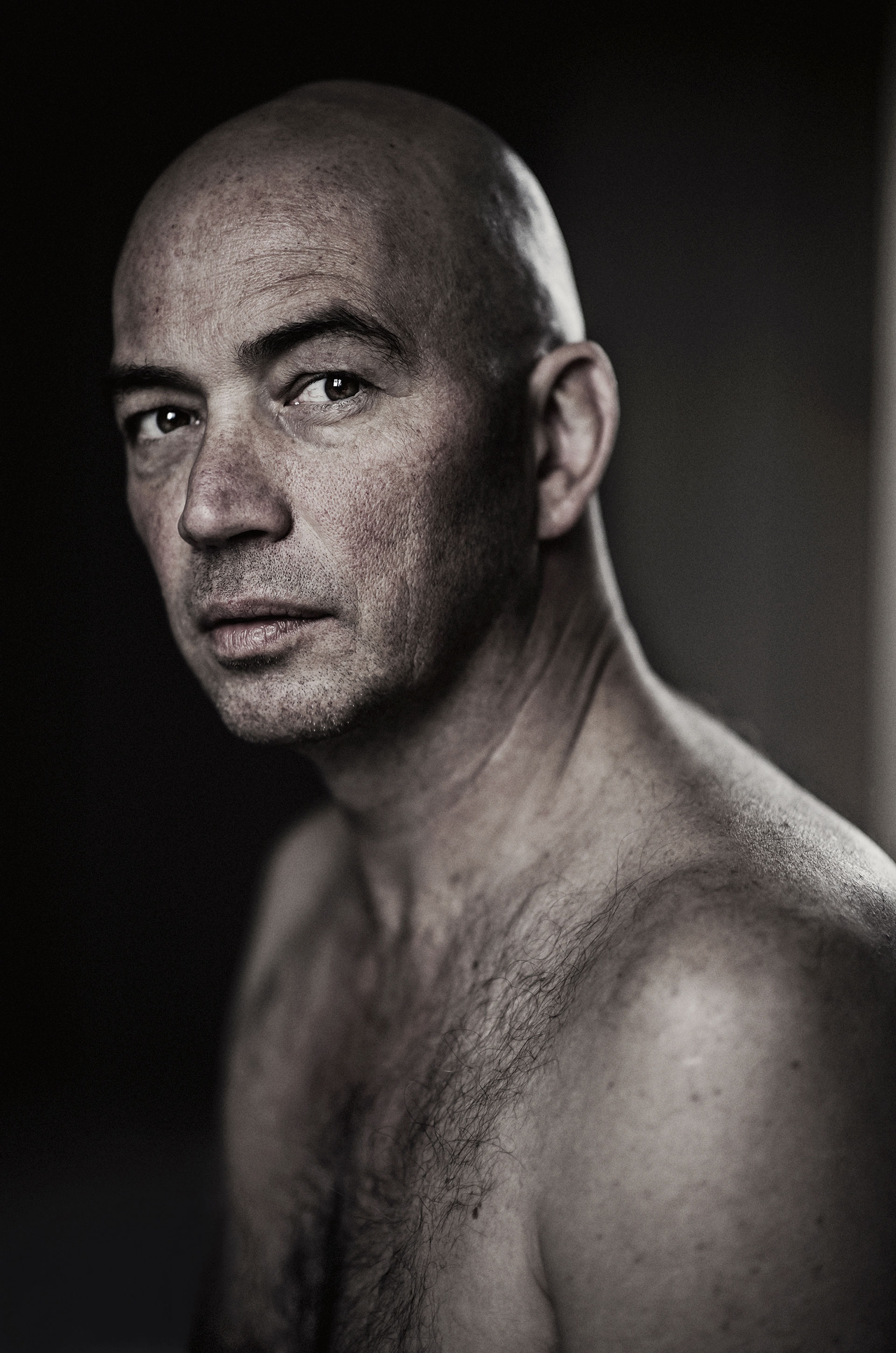 Het is allemaal psychologie, zegt hij. Fotografie is: openheid van geest hebben. Verrast willen worden. Wie zijn die onbekenden voor je camera? Je hebt vreselijke BN’ers, ijdeltuiten van de bovenste plank, en toch monden de meeste ontmoetingen uit in prettige samenkomsten. Zeker als de fotograaf nog een keer langs mag komen. Voorwaarde is ook: alle managers, voorlichters en ander menselijke ruis moeten weg. ‘Ik en de ander’, zegt hij. ‘Soms heb ik een paar uur de tijd, maar vaker een paar minuten. Het is een kortstondige, oppervlakkige ontmoeting. En toch moet het beeld een zekere intimiteit uitstralen. Het liefst met een onverwachte, korte emotie die je bij de lurven pakt.’
