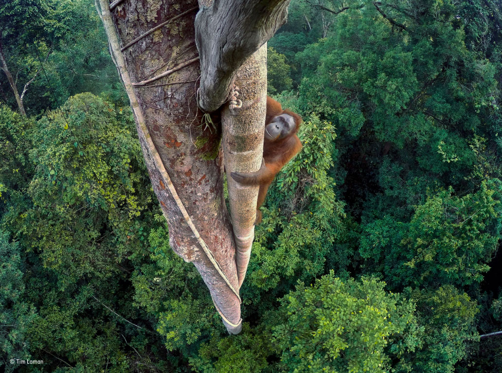 De Amerikaanse fotograaf Tim Laman is benoemd tot Wildlife Photographer of the Year. Hij kreeg de award voor een foto van een Orang-oetan in een boom.