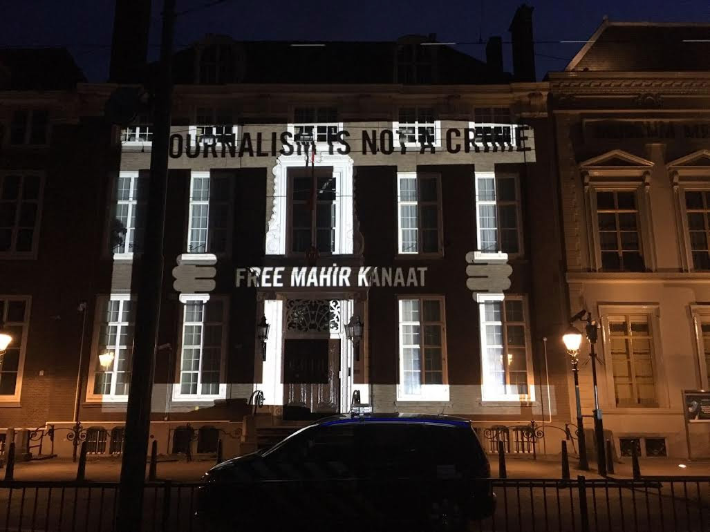 Amnesty International heeft gisteravond actie gevoerd bij de Turkse ambassade in Den Haag. Er werd aandacht gevraagd voor de vele journalisten die in Turkije gevangen zitten. Amnesty projecteerde hun namen op de gevel van de ambassade.