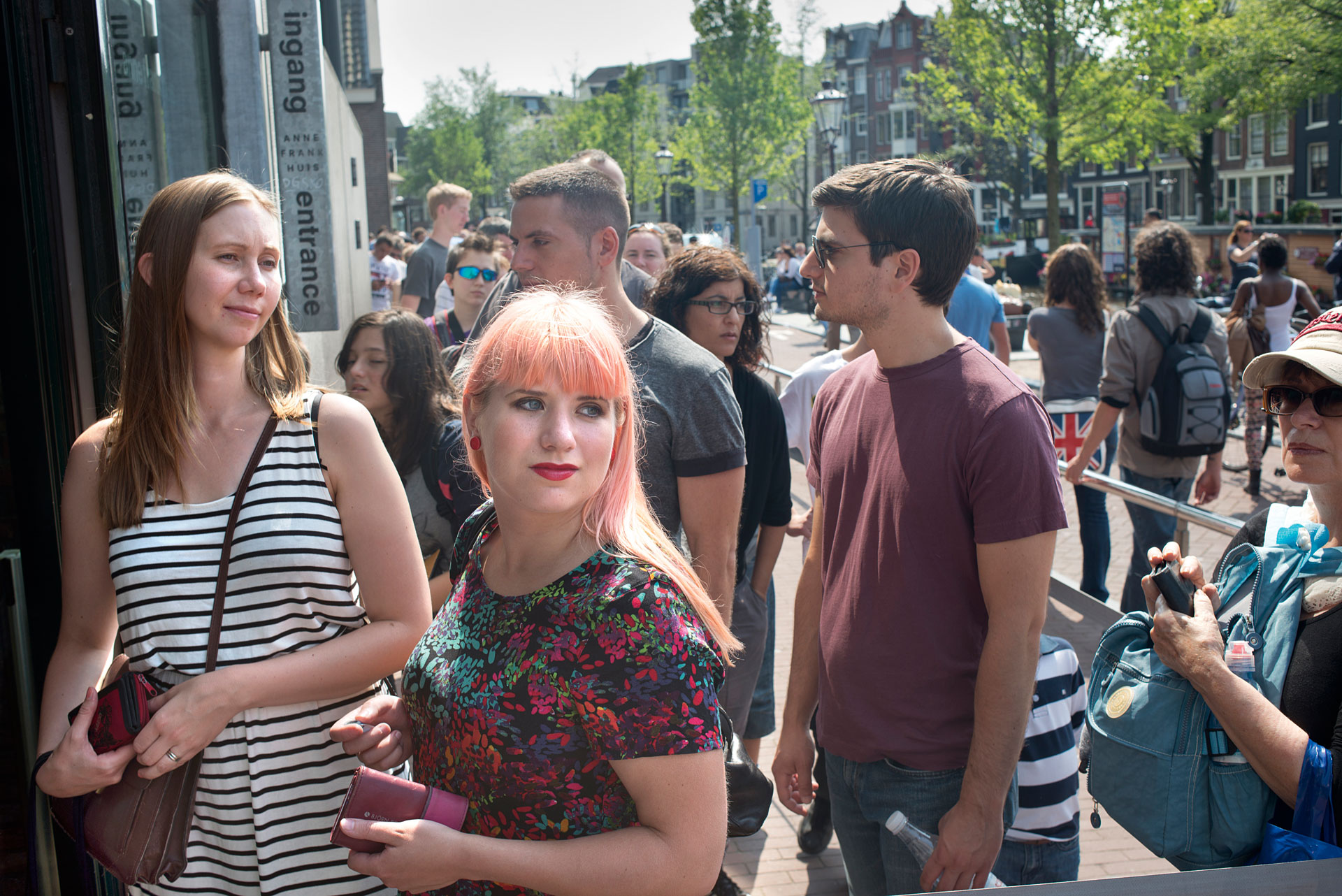 Op jacht naar buitenlandse toeristen bij populaire ‘attracties’ stevenen fotograaf en verslaggeefster Jeannine Julen af op het Rijks museum en treffen daar, anders dan gehoopt, geen massa wachtenden. Dat is wel het geval bij het Anne Frank Huis. Het journalisten duo loopt langs de vele wachtenden, en kijkt. Er moeten keuzes worden gemaakt. De verslaggeefster wil een goed verhaal, de fotograaf een sterk beeld.