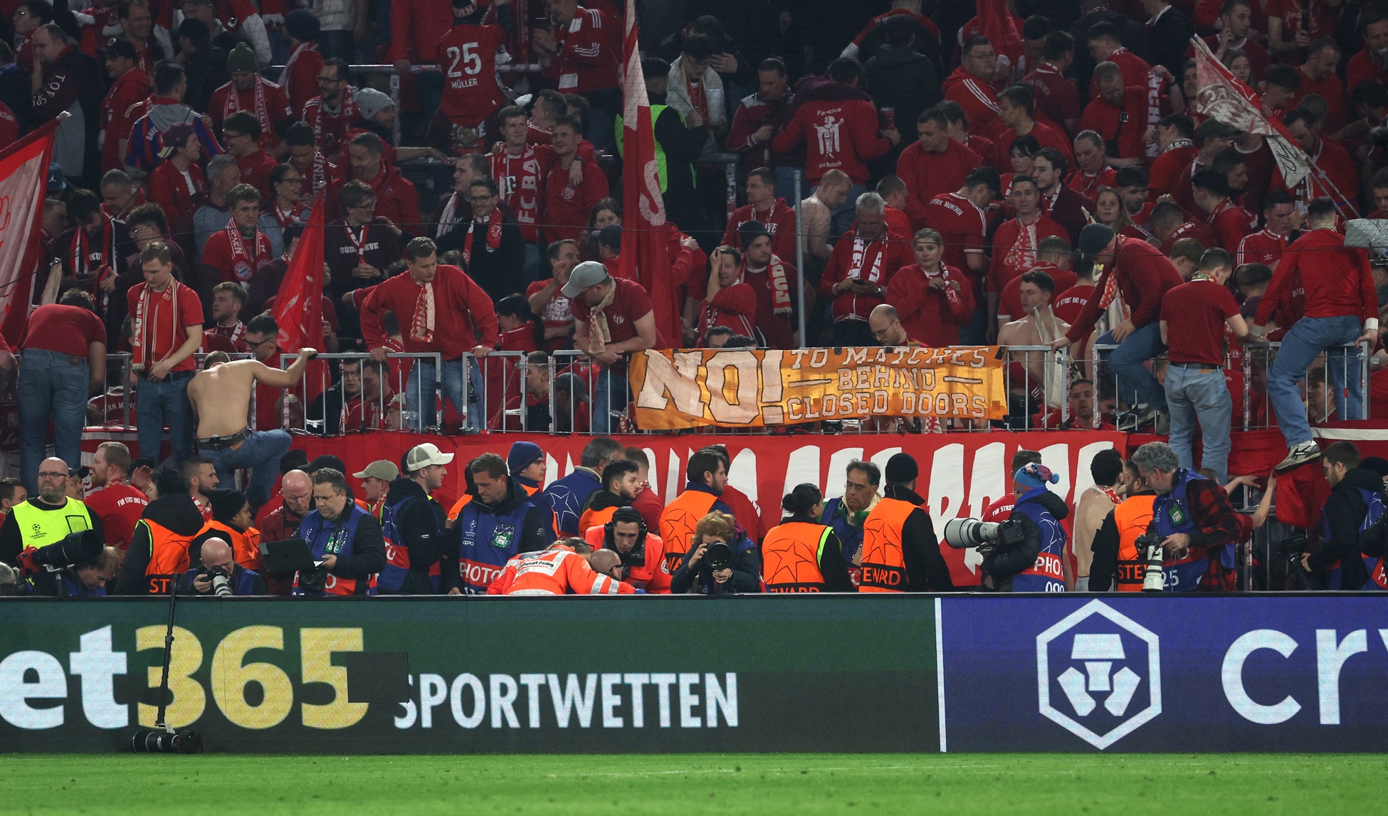 Bayern verzekerde zich met de overwinning van een plek in de halve finale van de Champions League. De club heeft contact gehad met de gewonde fotografen en de supporters.