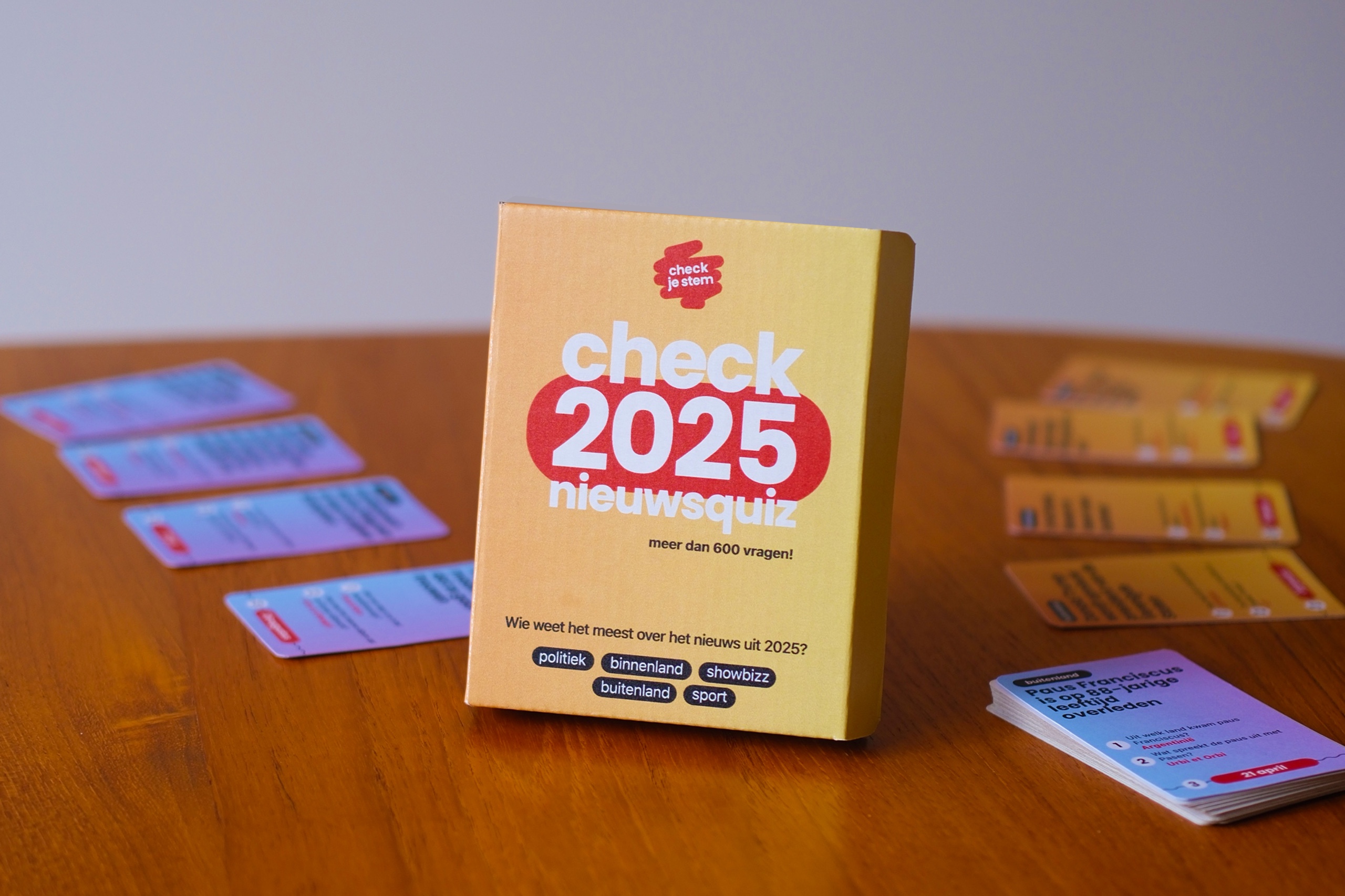 De feestdagen komen eraan en het einde van het jaar is in zicht: een goed moment om terug te blikken op het afgelopen nieuwsjaar. Dat dachten Maarten Muijser, bedenker van het populaire Instagram-account 'Check Je Stem', en Jeroen Gortworst, verslaggever bij de NOS. Zij ontwikkelden daarom een nieuw spel: een nieuwsquiz vol vragen over het afgelopen jaar.