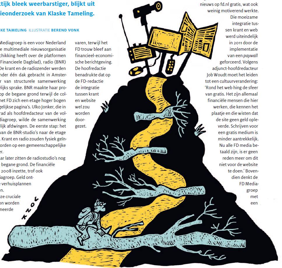 Deze crossmediale strategie betekende dat de journalisten van het FD werden aangespoord ook verhalen te maken voor de website. Dit kwam maar langzaam van de grond. Het schrijven voor de site betekende extra werk in de overvolle agenda’s. Bovendien was het nieuws op fd.nl gratis, wat ook weinig motiverend werkte.