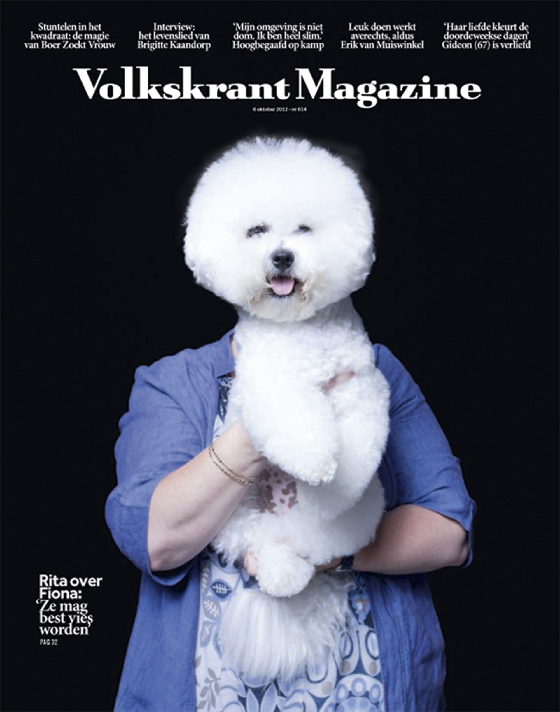 Biemans (40) alias Coverjunkie, verzamelt bijzondere covers – naar zijn eigen maatstaven, aan een goede cover ‘moet je willen likken’ – van over de hele wereld en plaatst die op zijn site coverjunkie.com. In het dagelijks leven is Biemans artdirector van Volkskrant magazine. Vorige maand kreeg dat blad een Award of Excellence op de SND (Society for News Design) Awards in Louisville voor de cover met hond Fiona (rechts). Voorheen was hij artdirector voor Intermediair, waar hij met zijn covers meerdere malen de prijs voor Cover van het Jaar won, uitgereikt door Mediafacts. Biemans zit geregeld in jury’s van internationale ontwerpprijzen – volgend jaar in die van de Britse D&AD design awards – en geeft lezingen over zijn werk in binnen- en buitenland.