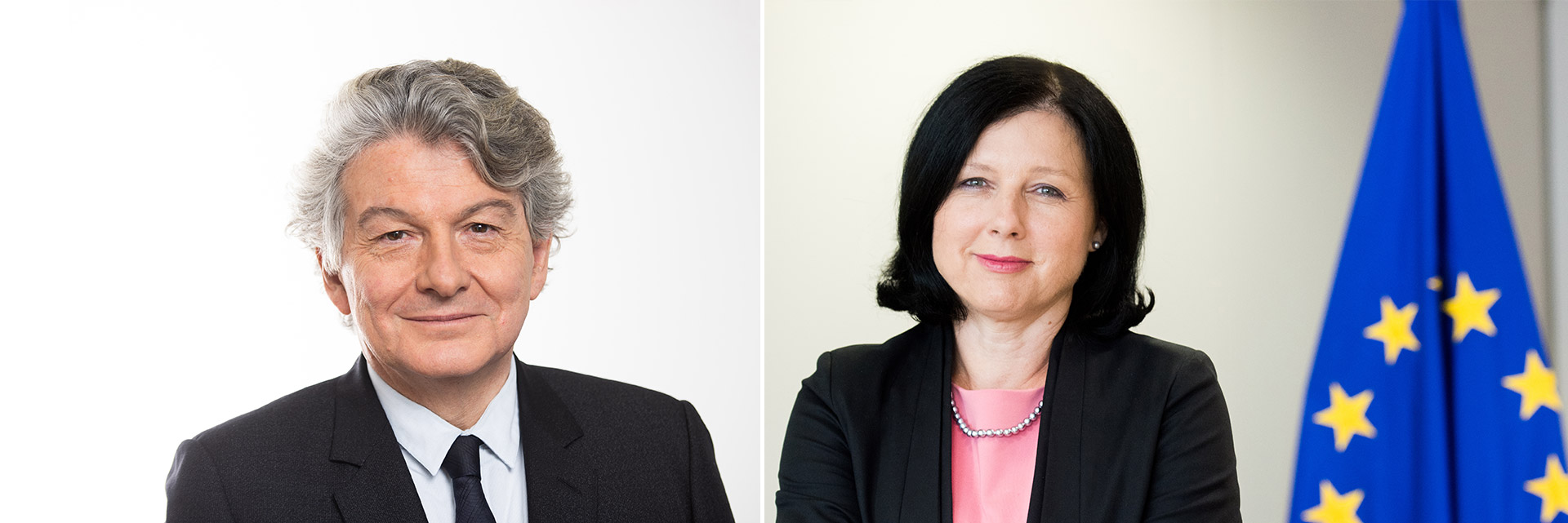 Věra Jourová is vicevoorzitter van de Europese Commissie voor Waarden en Transparantie. Thierry Breton is Europees commissaris voor de Interne Markt.