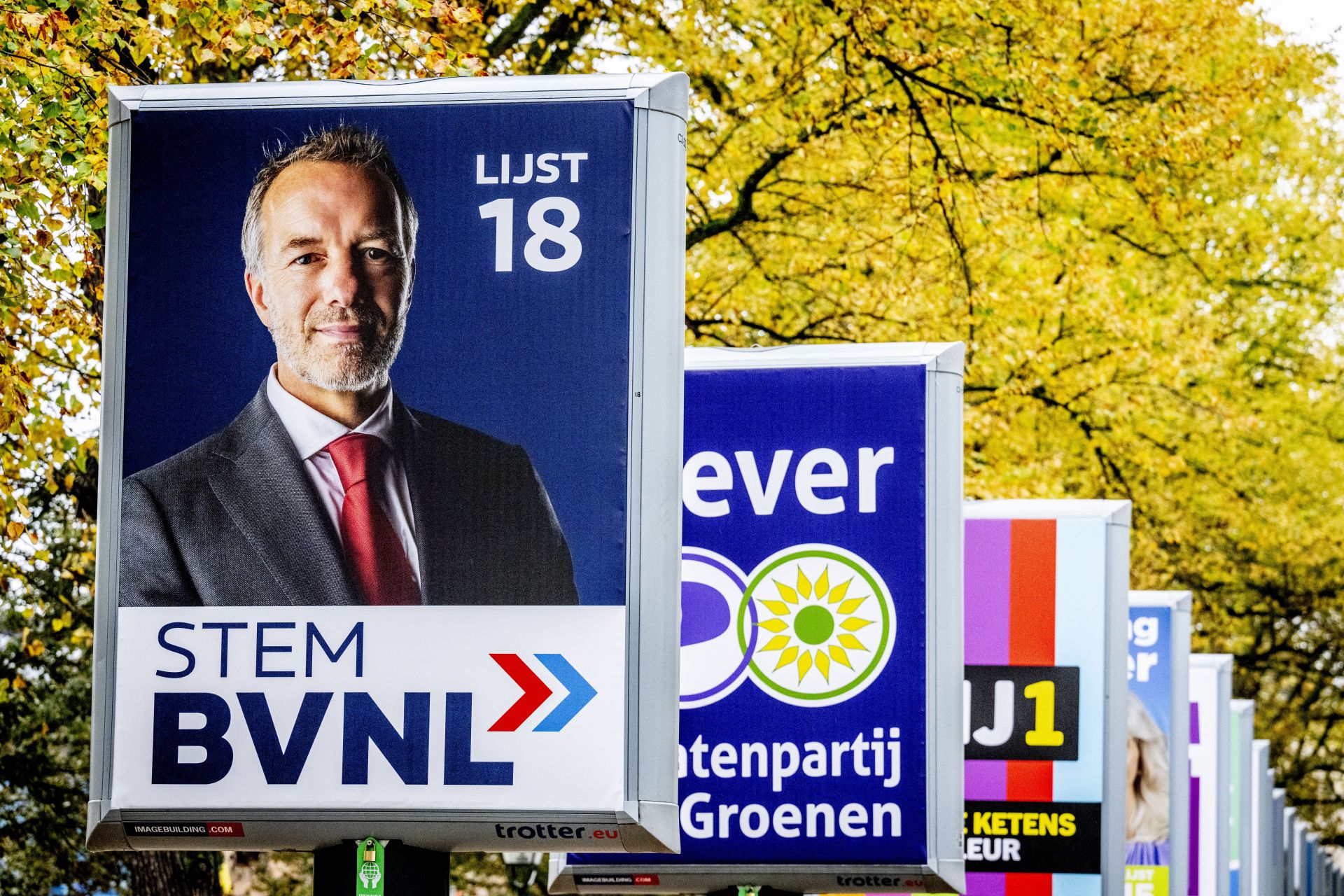 Lijsttrekker Wybren van Haga op de verkiezingsborden van BVNL in Den Haag voor de Tweede Kamerverkiezingen. - © Robin Utrecht