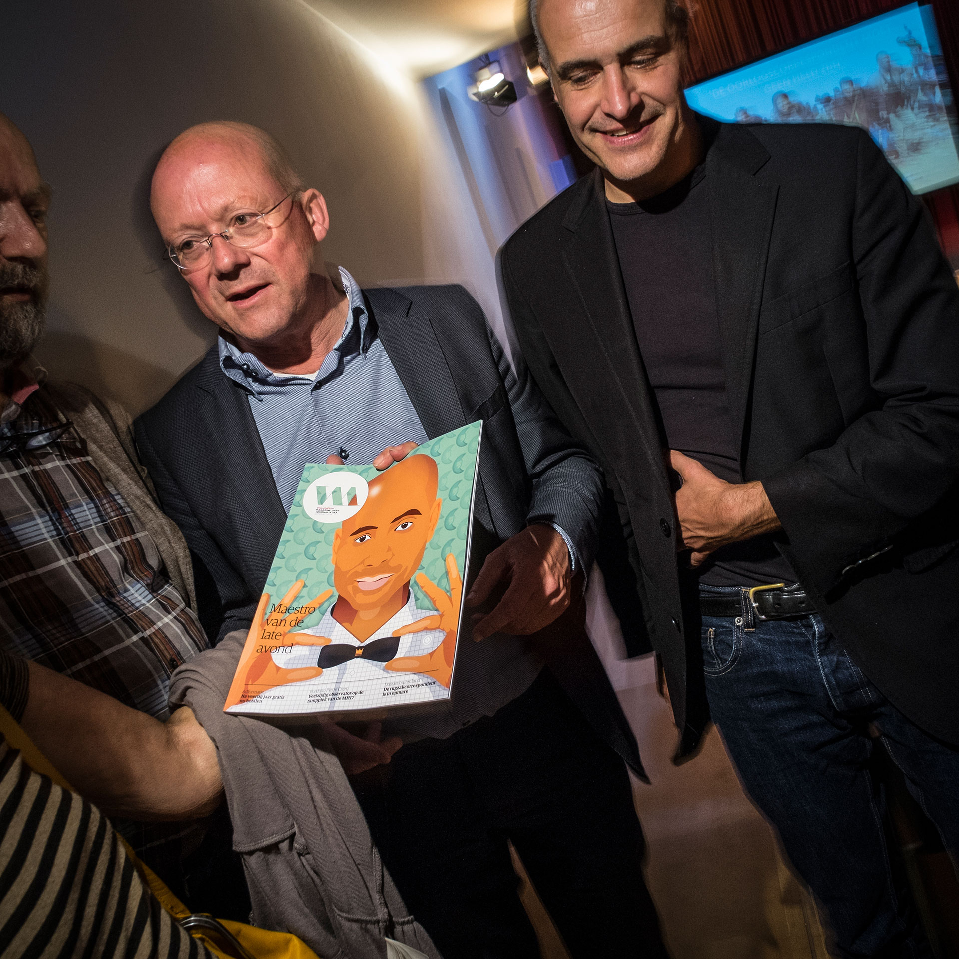 Mark Koster is, met fotograaf Frank Groeliken, graag onder vrienden. Elke maand verslaat hij voor Villamedia een journalistieke bijeenkomst. Op 9 oktober was hij te gast bij de jaarlijkse Joost Divendal lezing in debatcentrum De Nieuwe Liefde in Amsterdam. Minka Nijhuis sprak daar over ‘de buitenlandcorrespondent onder vuur’. Maar waar was Arnold Karskens?