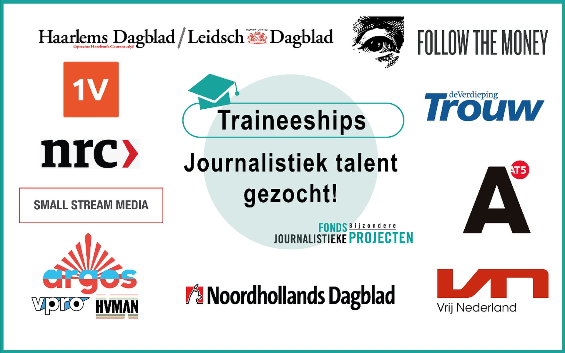 Vanaf vandaag kan jong talent solliciteren als onderzoeksjournalist in opleiding bij tien ervaren onderzoeksredacties. Met steun van de Regeling Jong Talent van het Fonds BJP kunnen tien journalisten een jaar betaald aan de slag bij Argos, AT5, EenVandaag, Follow the Money, Leidsch Dagblad/Haarlems Dagblad, Noordhollands Dagblad, NRC, Small Stream Media, Trouw en Vrij Nederland.
