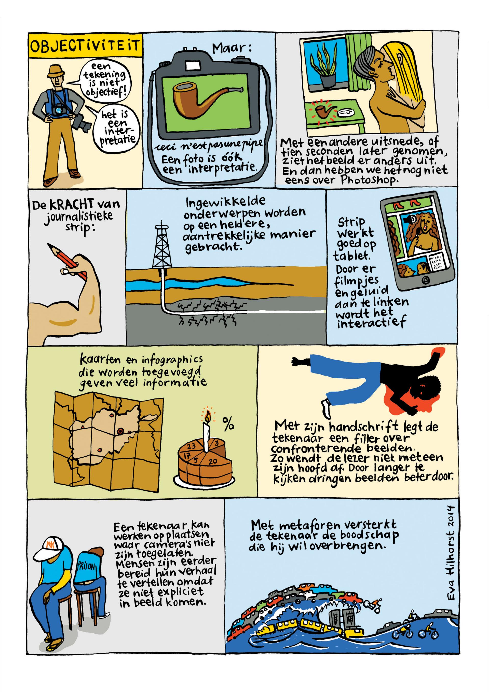 Wat is de meerwaarde van getekende journalistiek? Bij de opening van de expositie ‘Stripjournalistiek. De tekenaar als verslaggever’, op 16 december in het Persmuseum in Amsterdam, vertelt stripjournalist Eva Hilhorst dat stripjournalisten er niet op uit zijn om nieuws te brengen. De meerwaarde zit in context geven, inzoomen en achter de schermen kijken, laten zien hoe dingen werken.