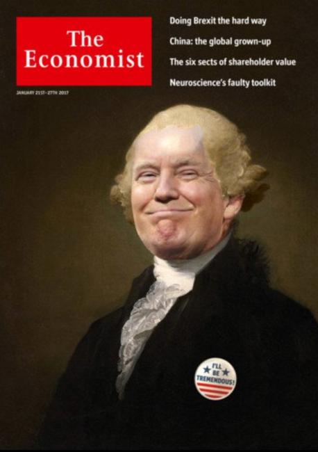 ‘That self-satisfied smirk of Trump, and then dressed like former president George Washington. I love to hate the covers of The Economist; they are often carried out so clumsily. But not here; this is good in every respect. It looks like an oil painting.’ © The Economist