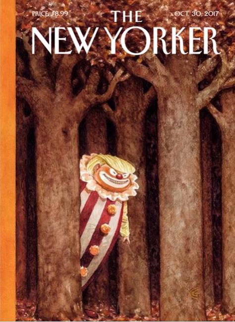 ‘This came out at Halloween. I think it’s good when you can connect something topical with a news item. And it’s funny that this clown actually looks like Trump. The great promise to cartoonists when Trump was elected – that they would have fun – can be seen in this type of cover.’ © The New Yorker & Garter Goodrich