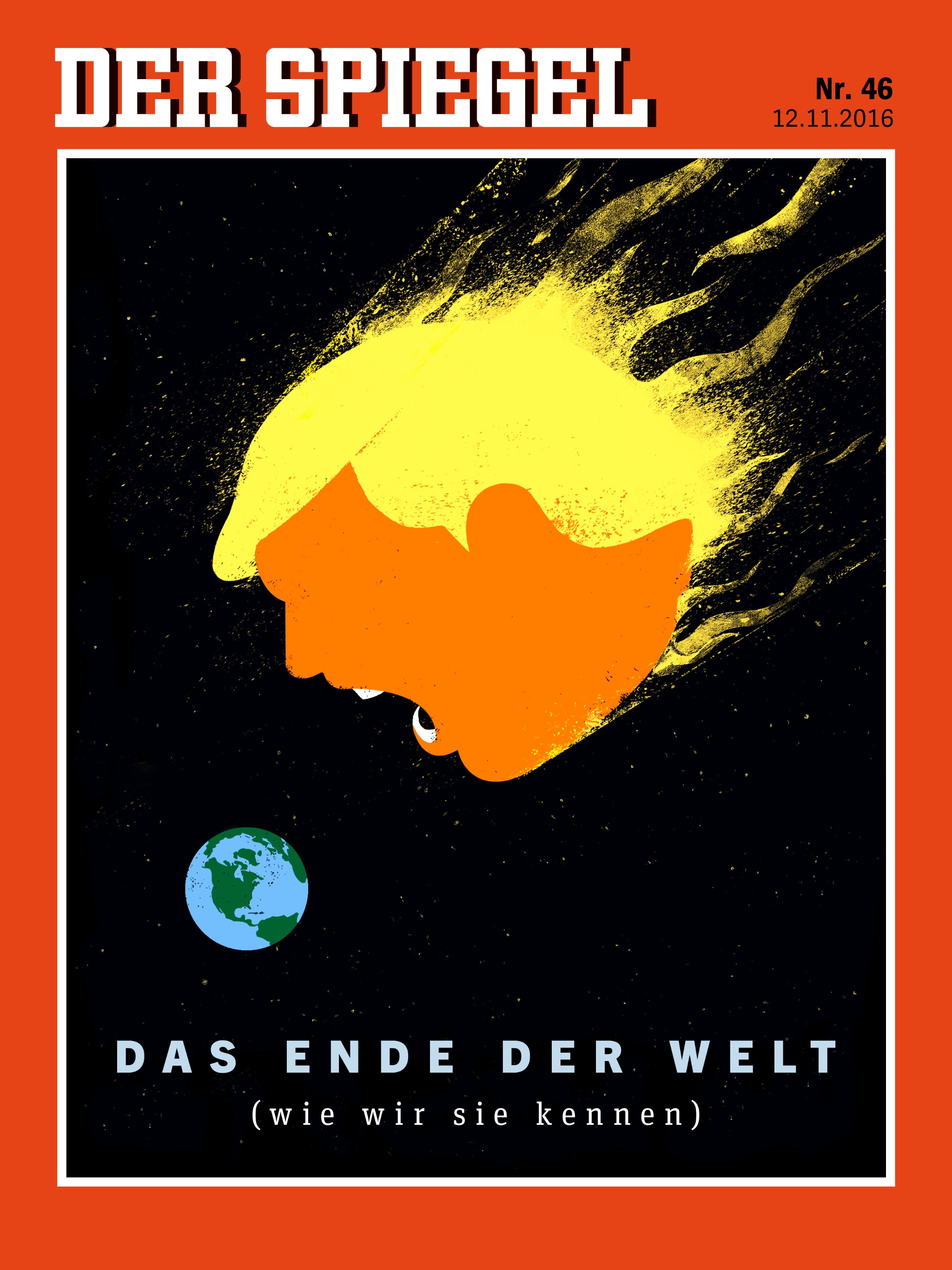 ‘An intriguing Trump cover, but without Trump. The atmosphere is so threatening and graphically so strong that it hurts.’ © IL Magazine