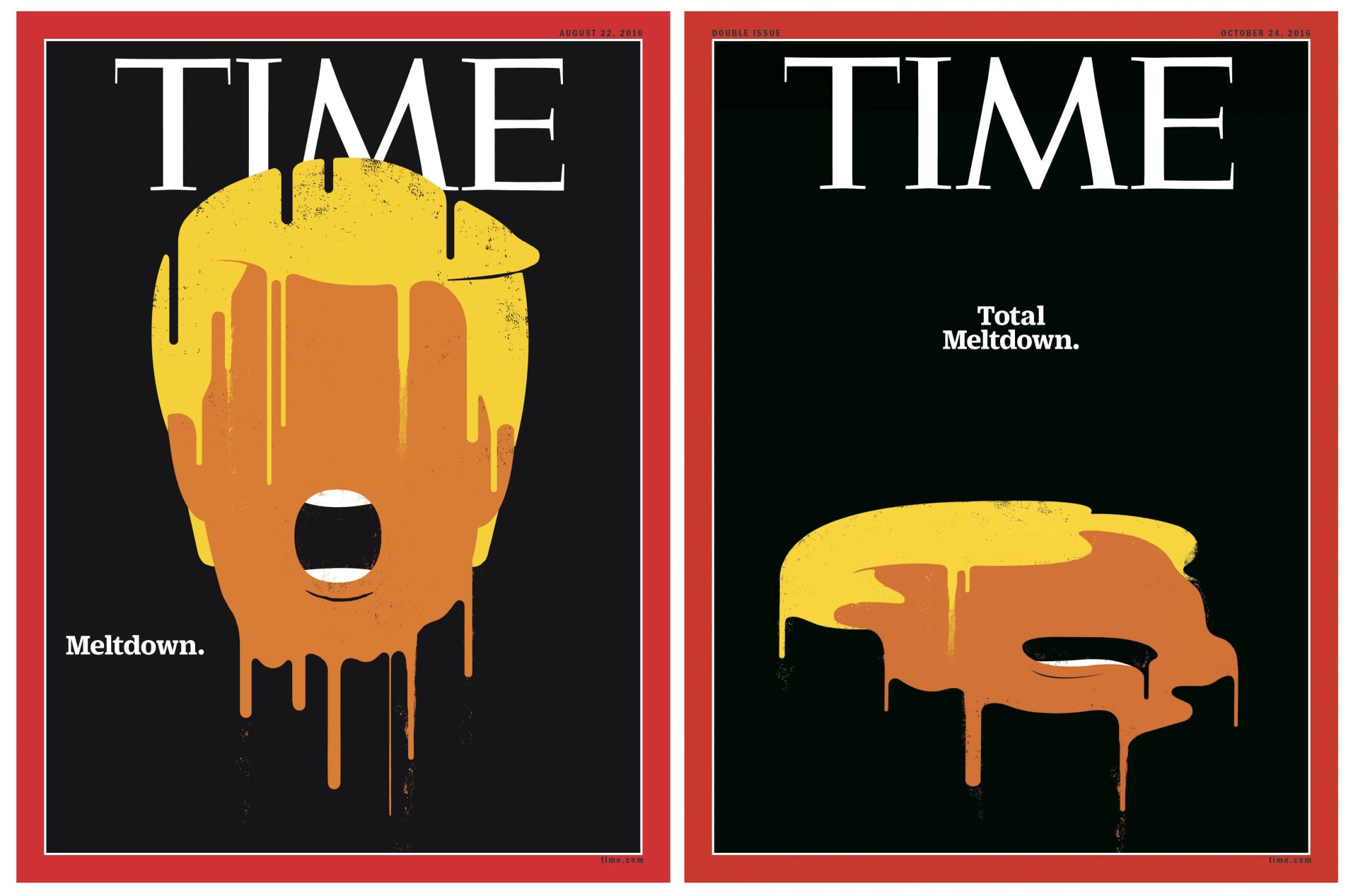 ‘This was: wow! Simply extraordinary that TIME dared to do this. And also that they made a follow-up cover two months later. You hardly ever see that. Plus it’s difficult to draw a melting head. After all, it has to look like the person.’ © TIME & Edel Rodriguez