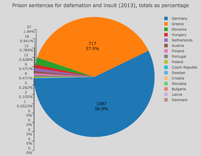 Duitsland staat in Europa op twijfelachtig eenzame hoogte waar het gaat om veroordelingen op basis van wetgeving rond diffamering. Onderzoek van het International Press Institute (IPI) wijst uit dat er in Duitsland 29 keer zoveel veroordelingen worden uitgesproken dan de nummer twee op de lijst, Portugal.
