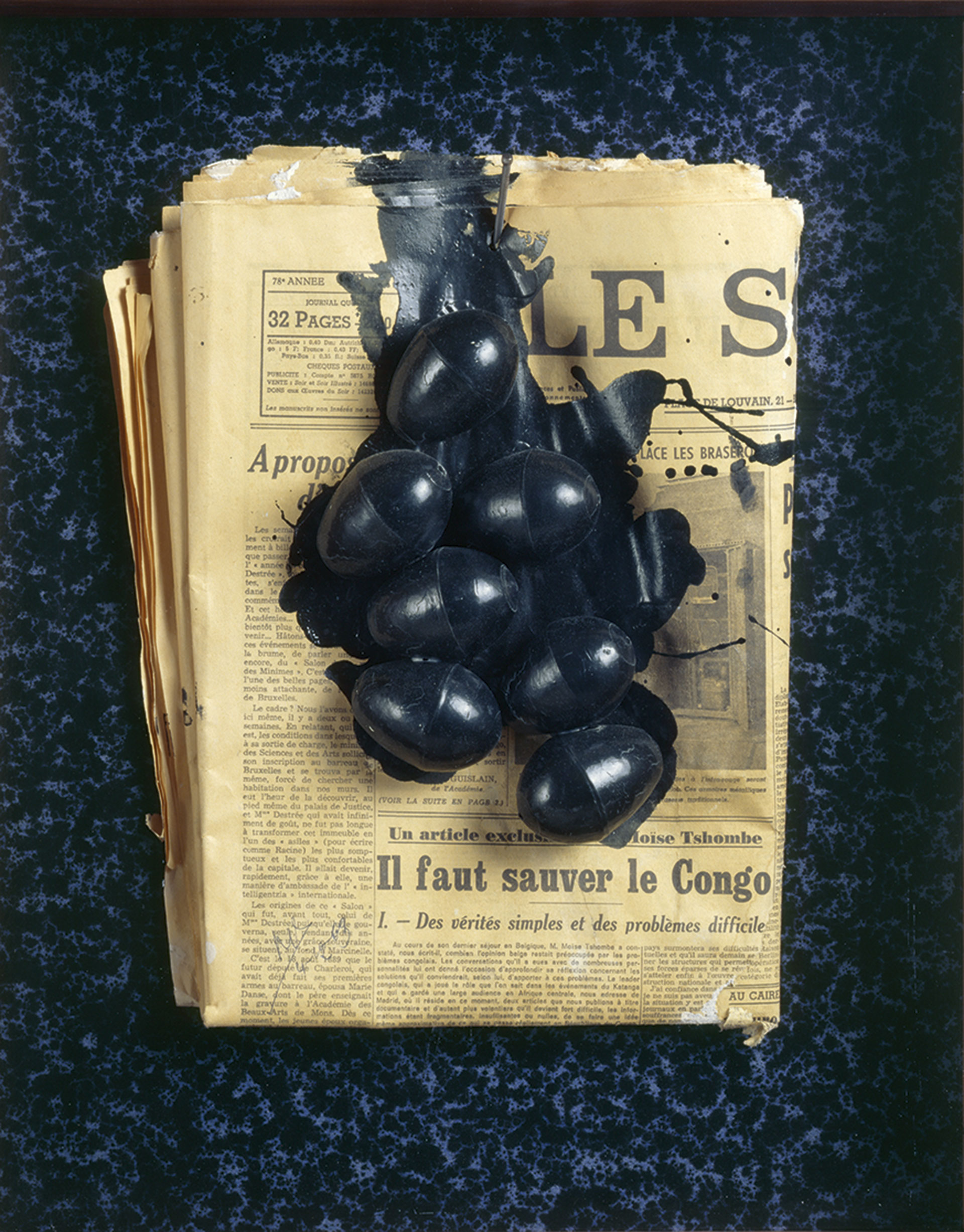 De gescheurde, gedraaide, geplakte knipsels weerspiegelen de variëteit van het dagblad met zijn nieuws, faits divers en advertenties. Sommige knipsels verwijzen naar ingrijpende gebeurtenissen zoals de Balkanoorlogen. Maar in combinatie met hoekige gitaren en flessen cognac of Suze vormen ze vooral stillevens van de nieuwe tijd. De bijbel van weleer is vervangen door de krant.