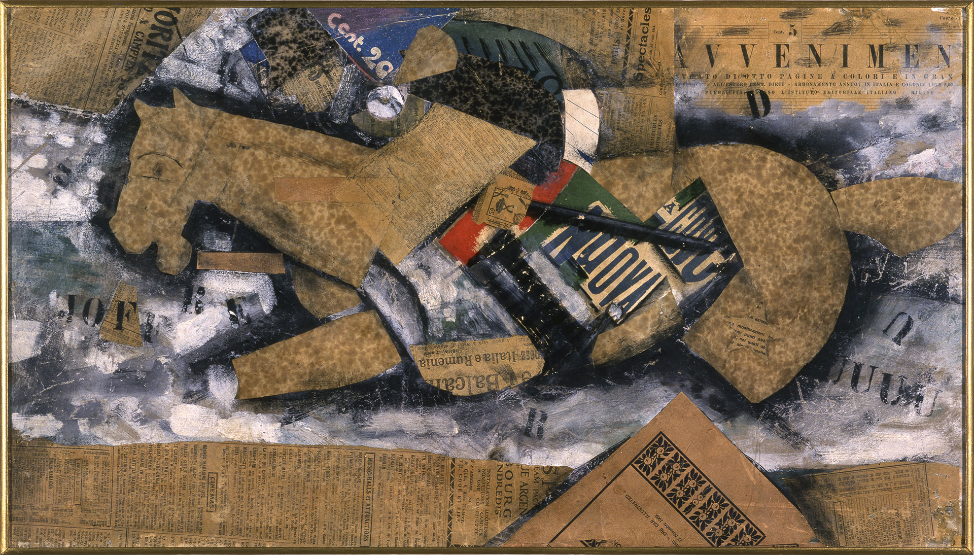 Vanaf 1911 zorgden Pablo Picasso, Georges Braque en Juan Gris voor een revolutie in de kunst die parallel liep aan de modernisering van het straatbeeld. In hun kubistische collages zijn letters, woorden, kolommen of hele pagina’s verwerkt die een veelheid van associaties oproepen. De frequent gebruikte krantentitel Le Journal, vaak gereduceerd tot enkele letters (JOU of alleen maar J), suggereert actualiteit.
