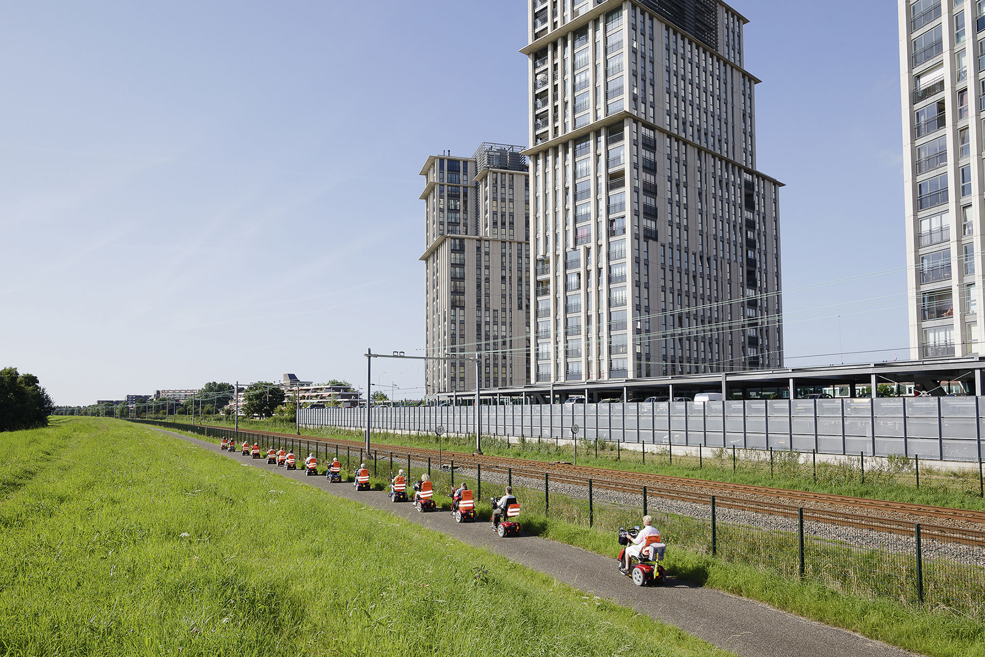 Zo heeft hij nog meer subculturen in het schootsveld, zoals mannen die naar voorbijvarende schepen kijken, mannen met één voet nonchalant tegen een muurtje of de veertien dames en één heer van de Maassluisse scootmobielvereniging, de Scootrangers. Bij mooi weer trekken ze er op uit, in ganzenpas achter elkaar door de polders rijdend. De Krom is een vertrouwde gast. De fotograaf mag mee op hun gezamenlijk vakantie in de Achterhoek.