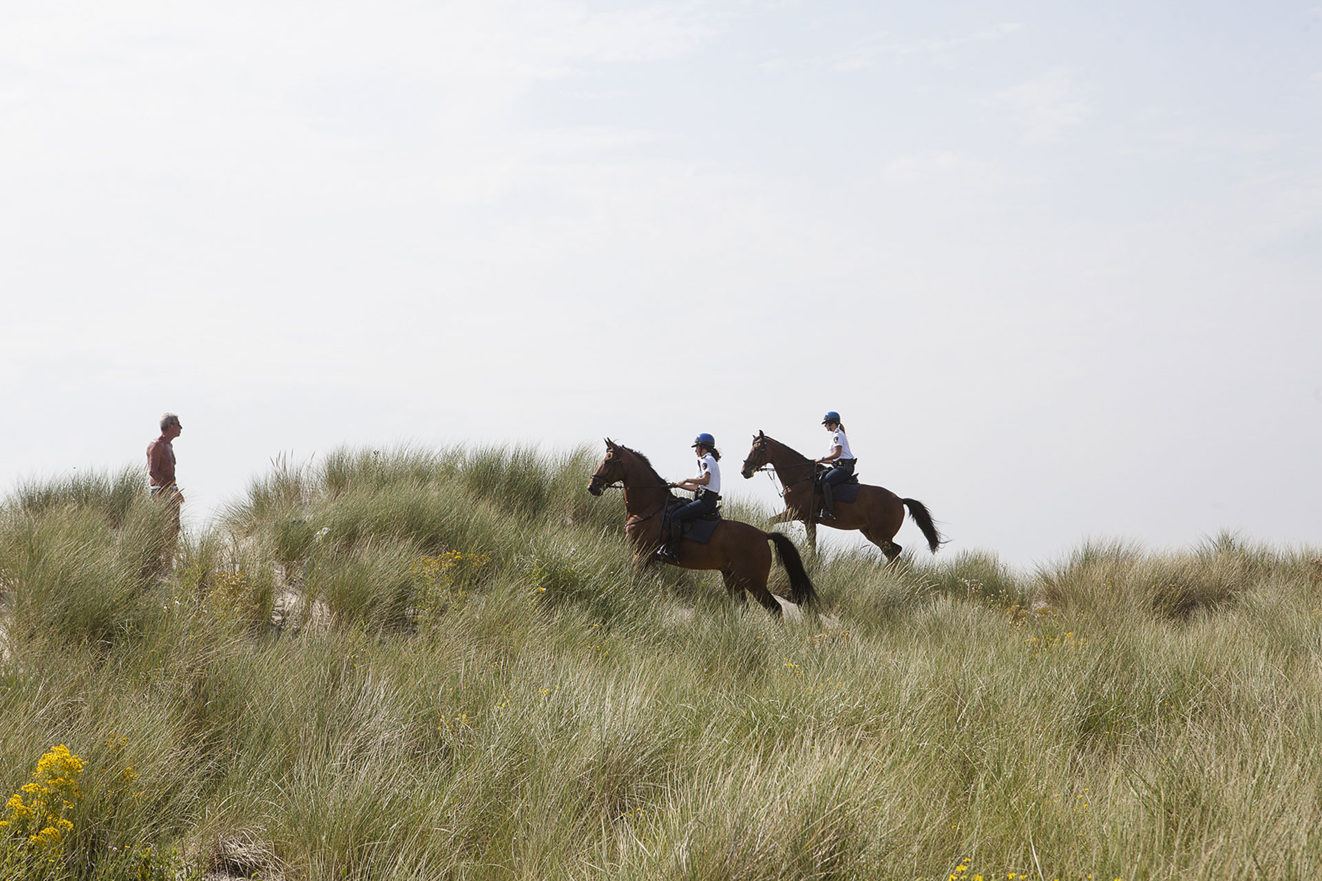 Fotograaf Peter de Krom woont al dertig jaar in Hoek van Holland. Nog altijd kijkt hij zijn ogen uit in die maffe enclave. Neem de stokstaartjes, een groepsomschrijving van mannen die zich op duintoppen in volle glorie tonen aan hun soortgenoten. De Krom won onlangs twee prijzen bij de Zilveren Camera.
