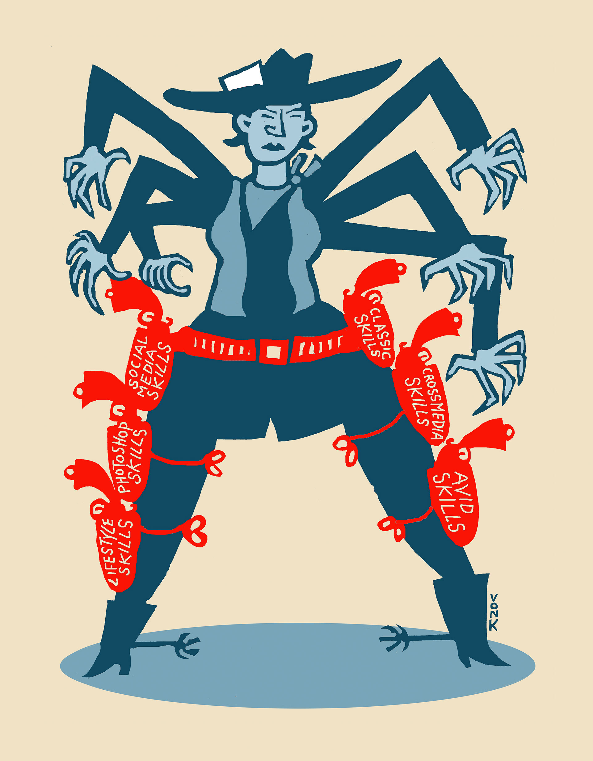 Wat moet je eigenlijk doen als digitale duizendpoot in een ‘multimediale werkomgeving’, behalve dat er van je verwacht wordt een ‘actief internetgebruiker’ te zijn en ‘veel affiniteit met digitale media’ te hebben? Schrijven voor het web dus: ‘webredactie’, ‘websites en social media voorzien van passende content’, ‘e-mailnieuwsbrieven samenstellen en versturen.’