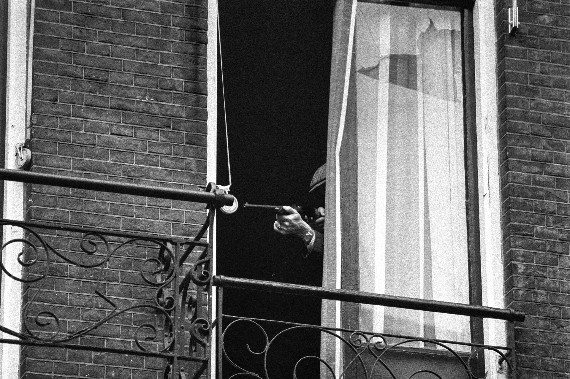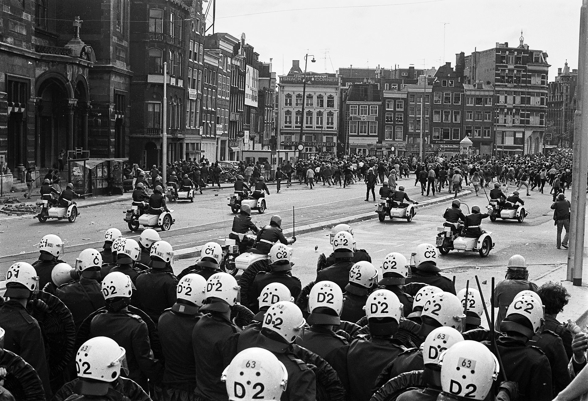 Agenten met getrokken pistolen, niet één maar meerdere. Hij zag de man terug die vanuit een naburig pand zijn geweer op de krakers richtte. Ineens voelde Verhoeff weer de grimmigheid van de jaren ‘80. ‘Het was onvoorstelbaar, dat je zoiets vergeet’, zegt hij nu. ‘Door het zien van de foto’s komt alles terug.’