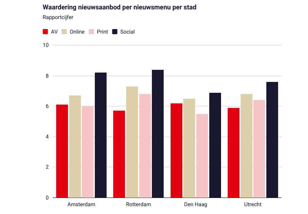 Het nieuwsaanbod van een specifieke aanbieder kan zo per platform enorm verschillen. In alle onderzochte grote steden is de nieuwsvoorziening gefragmenteerd en spelen de aanbieders elk een unieke rol.