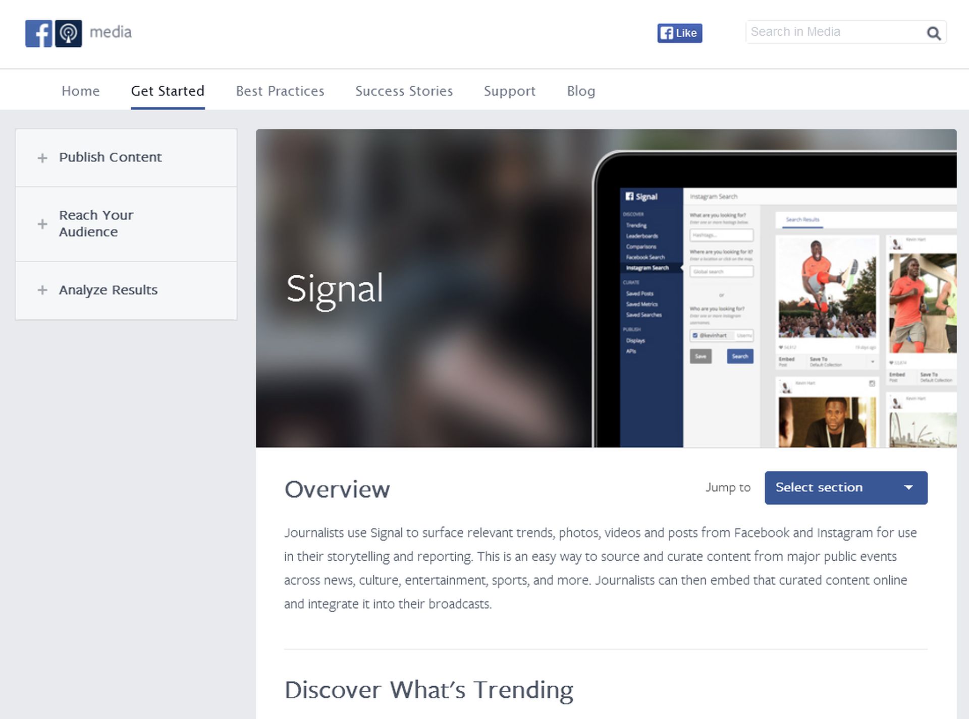 Facebook heeft Signal gelanceerd, een nieuwe desktop-app waarmee journalisten al het nieuws op Facebook en Instagram kunnen volgen. Signal toont in een overzicht welke onderwerpen op het moment trending zijn, en waar sinds kort veel over wordt gesproken.