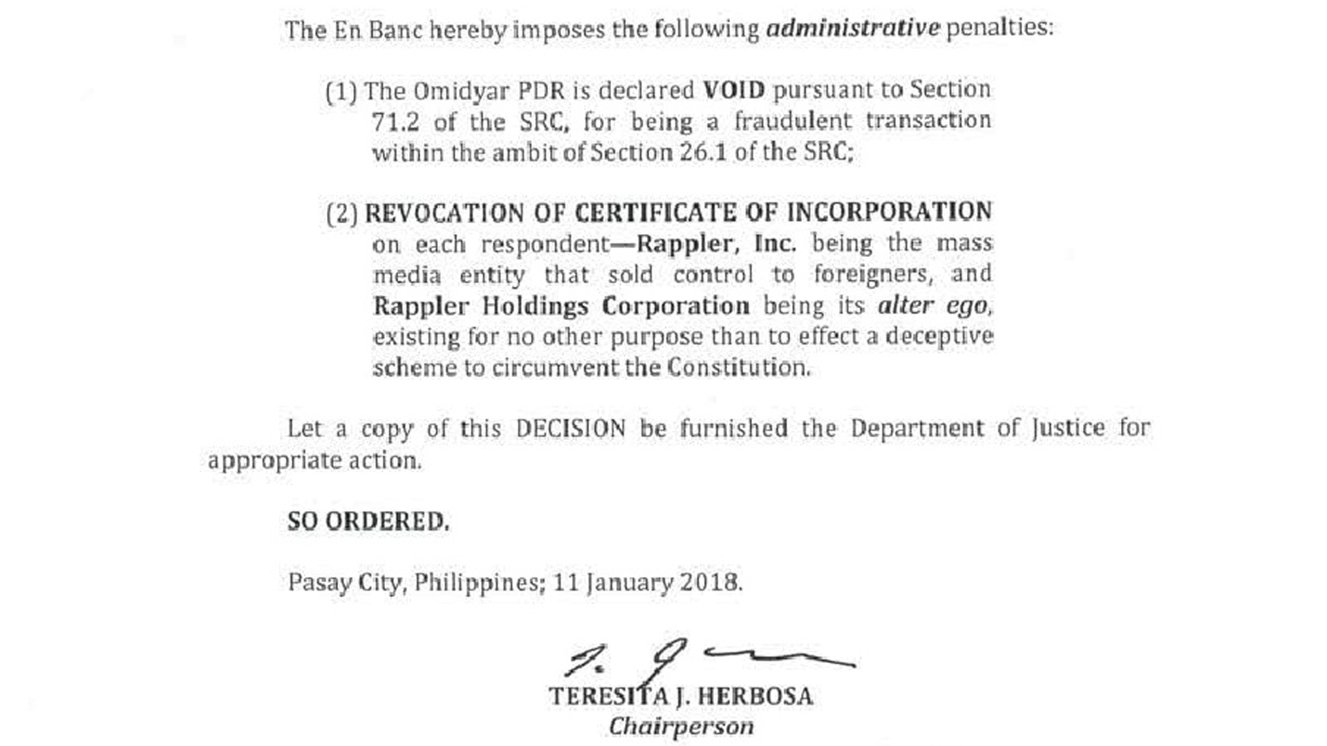 Rappler zegt tegen het besluit in de beroep te gaan en “alle juridische middelen die ons ter beschikking staan te zullen inzetten”.