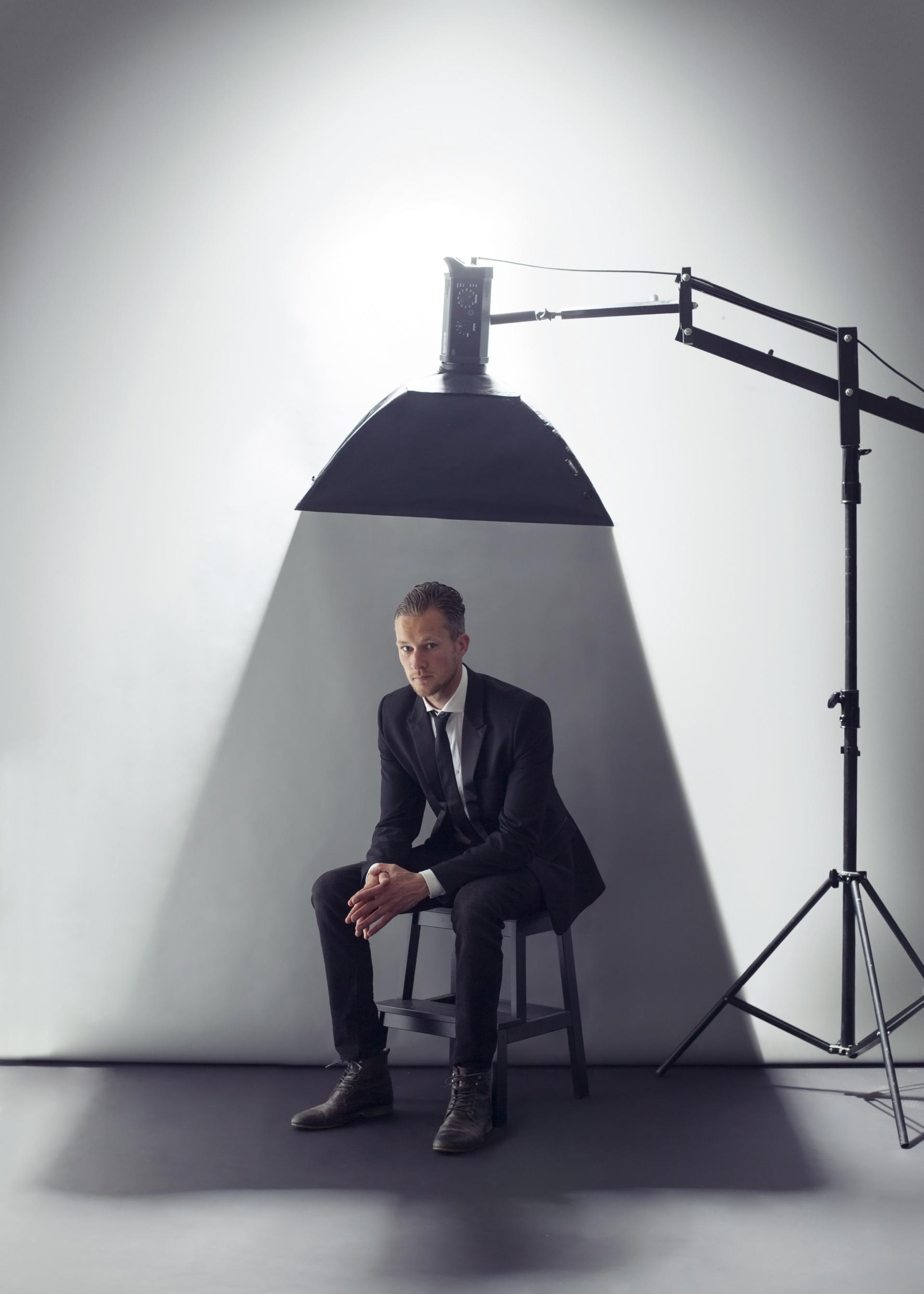 ‘Dat verzin ik ruim van tevoren. Het liefst met een moodboard. Dan heeft de geportretteerde ook een idee wat er van hem/haar verwacht wordt. Meestal ga ik me eerst verdiepen in de persoon en dan ontstaat er een plan. Soms ook heel simpel. Zo mocht ik illusionist Hans Klok fotograferen. Dan heb ik meteen allemaal ideeën.