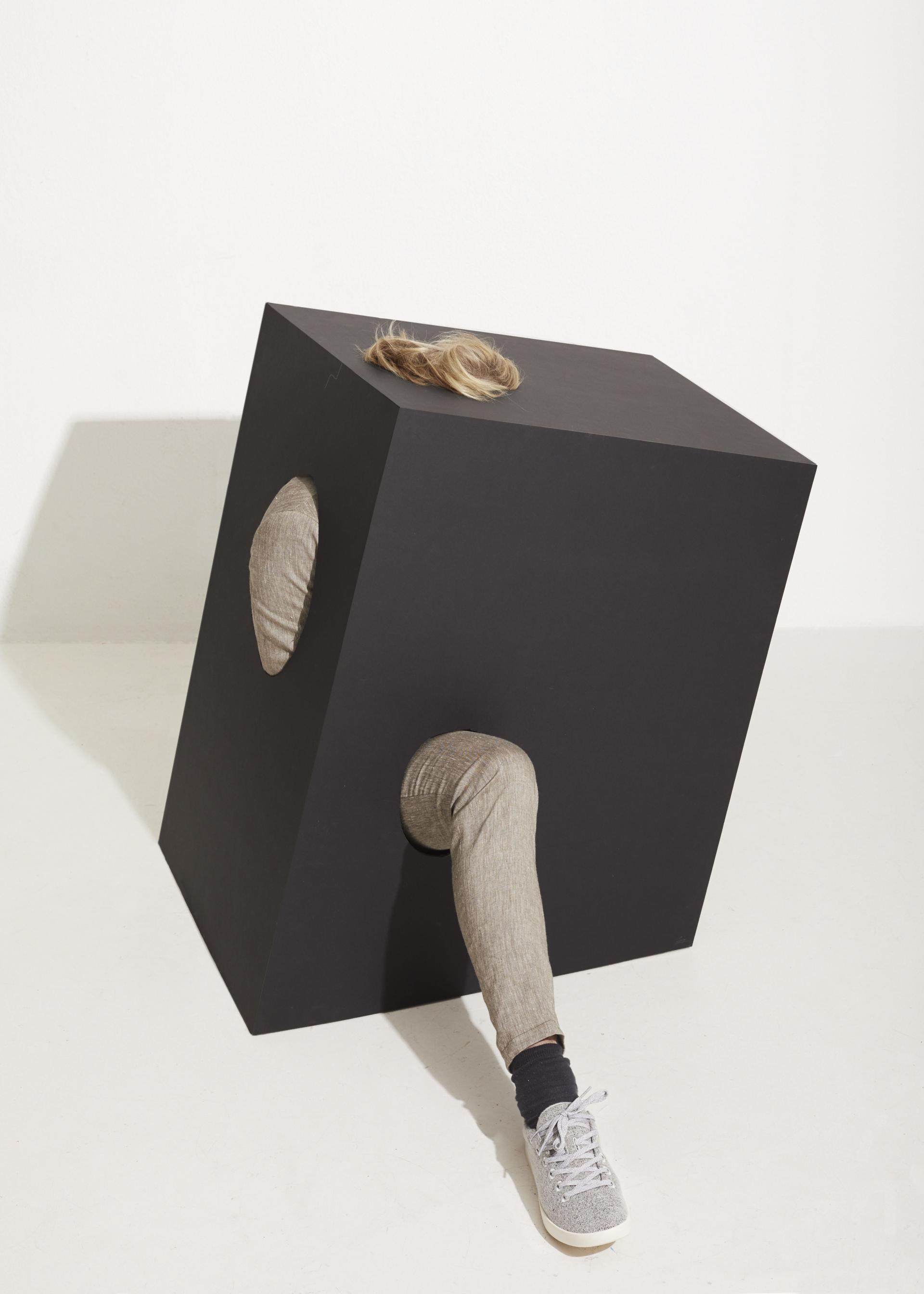 Met de serie “What Remains” heb ik - geïnspireerd op Vrouw met Kraai en de onaffe schetsen van lichamen van Egon Schiele - allerlei mensen gefotografeerd met ledematen die door muren steken. Op het idee van verhullen ga ik dan doorborduren, experimenteren in mijn studio en testshoots doen met mijn stagiair. Zo zoek ik naar het beste idee. Uiteindelijk heb ik Klok onder andere in een doos gefotografeerd.’