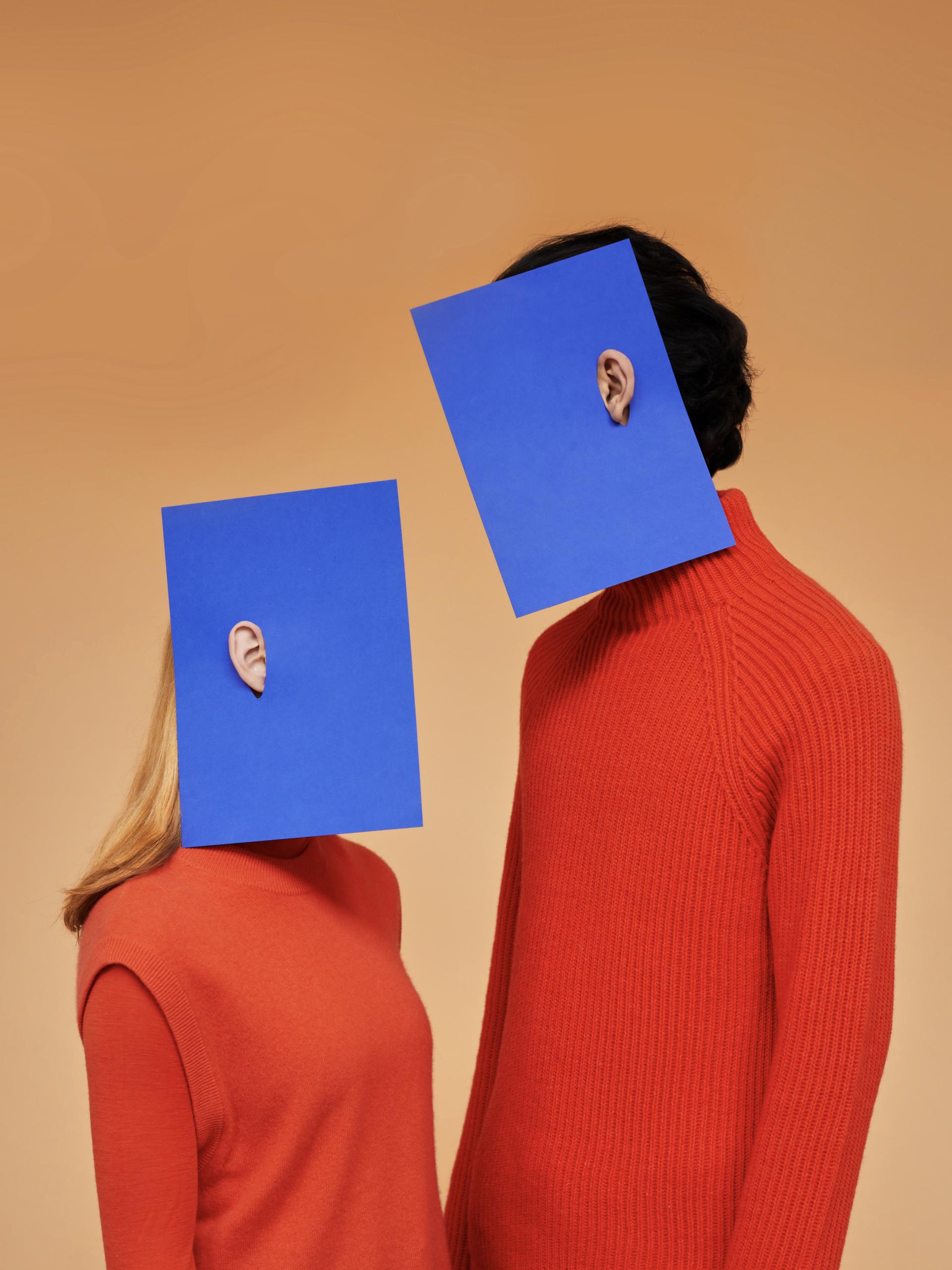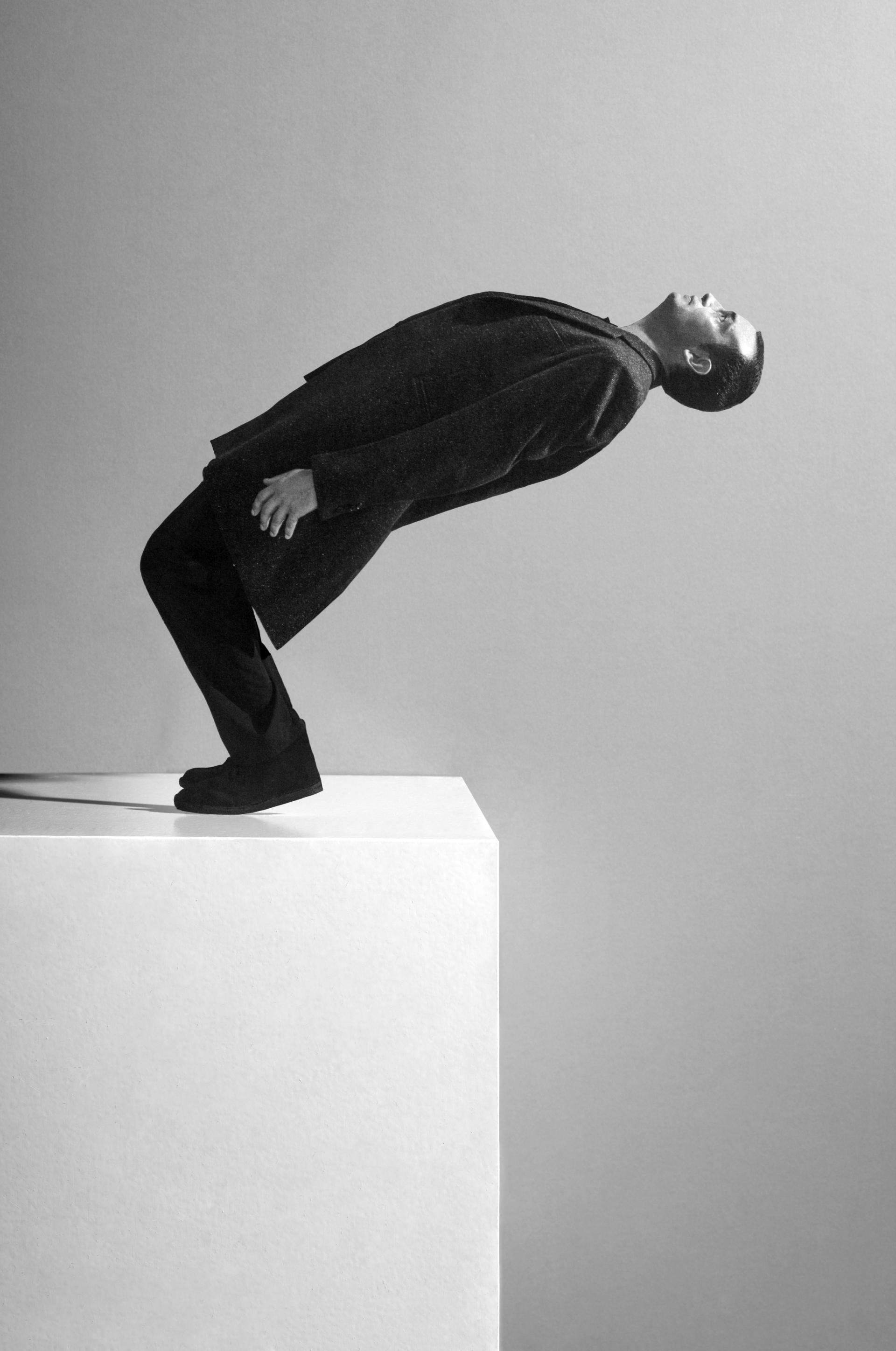 ‘Ken je het schilderij Vrouw met Kraai van Picasso? Die vrouw heeft hele lange vingers en hoge rechte schouders. Als ik zo’n schilderij zie, fascineert dat me. Dan denk ik meteen: hoe kan ik dat effect creëren? Dan ga ik een set bouwen, een silhouet tekenen en uitknippen en iemand daarin zetten. Om te zien wat er ontstaat en of ik inderdaad daarmee een lichaam kan vertekenen. Ervoor kan zorgen dat het lijkt alsof mensen hele hoge schouders hebben of juist geen onderarmen meer. Ik vind het leuk als je niet meteen begrijpt wat je ziet als je naar mijn foto’s kijkt.’