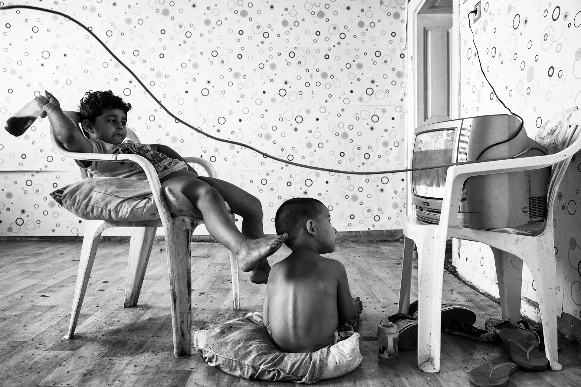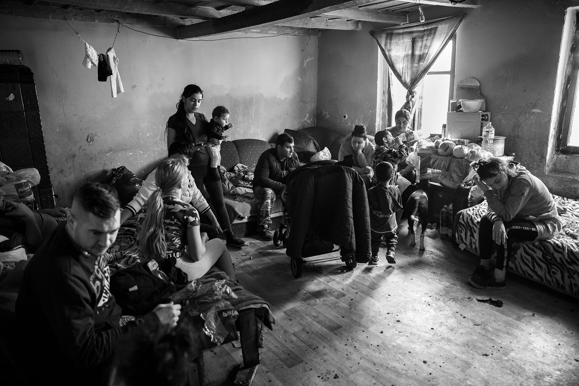 Na ieder bezoek keert ze terug naar de plek waarin ze zelf verzonken is, haar woning en leven in Assendelft. Lang was waterpolo een vast gespreksonderwerp aan tafel. Op één na lag iedereen van het gezin in het water. Een van de zoons werd professioneel waterpoloër in Roemenië. Toen moeder in de derde klas van de Fotoacademie zat, besloot ze hem op te zoeken in het stadje Oradea. In haar vrije tijd zwierf ze door de armste wijken, waar ze in contact kwam met een grote Roma-familie. ‘Er heerste een benauwdheid van tijd en ruimte’, schetst ze de omgeving. ‘Drie generaties woonden er op elkaar in een klein huis. De kinderen zag ik nooit met hun ouders lachen, zingen of spelen. Kun je hier het leven nog een andere richting geven, vroeg ik me af. Of is autonomie hier een illusie? Ik begon er een fotoproject in te zien.’