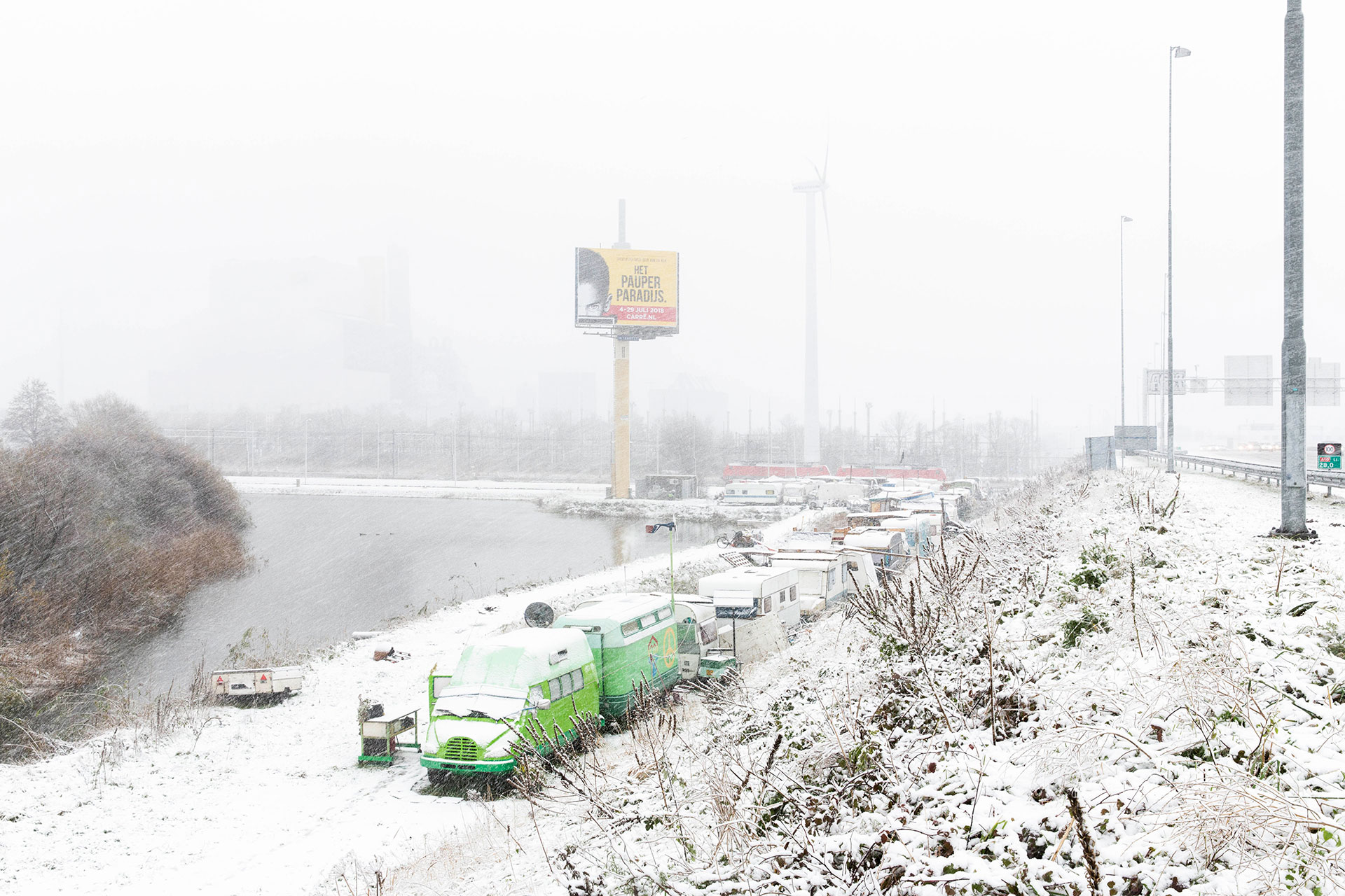 Toen kwam Leen in beeld. Hij woonde op Landje 6, een verrommeld uithoekje, waar drugs- en andere verslaafden uitzicht proberen te houden op een beter leven. Minten, toen al fotografiestudent, zag de plek een keer vanuit de trein. Kort erna trok ze de stoute schoenen aan. Zo leerde ze Leen kennen die ervoor knokt om de speed en het onzalige landje achter zich te laten. ‘Hij is in zijn omgeving verzonken’, beschrijft Minten zijn gevecht, dat ze al twee jaar volgt. ‘Bij ieder bezoek neem ik mijn camera mee. Op een dag zei hij tegen me: “Ik gooi het roer om, het moet anders”. Hij was sterk en koos, net als mijn vader, ook voor de autonomie. Hij wilde weg van de ellende, naar een huis voor zichzelf.’