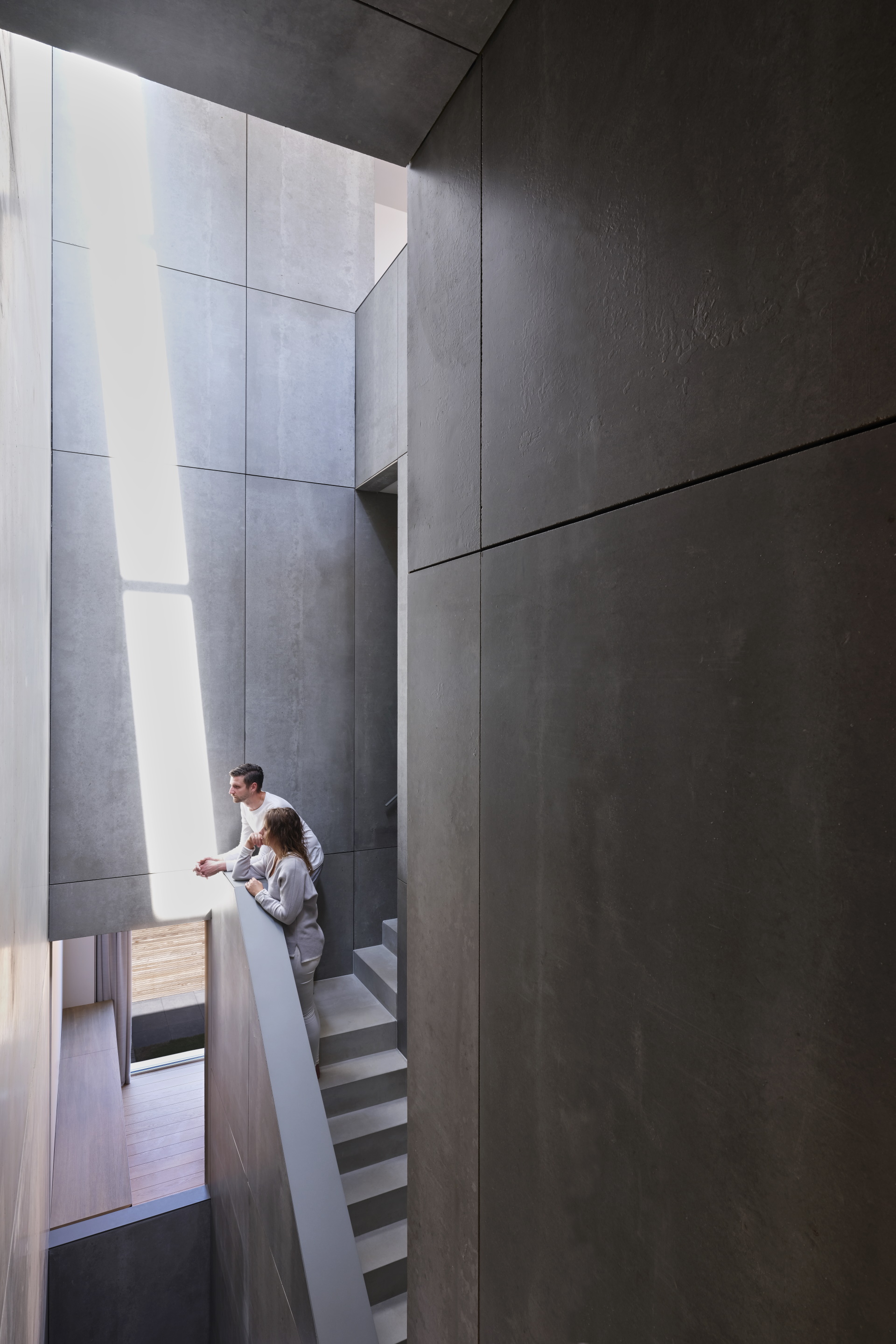 Het beeld raakt hem nog iedere keer als hij het ziet, omdat het volgens hem een ‘existentiële eenzaamheid verbeeldt’. Drie kinderen, kwetsbare mensen, proberen de perfecte wereld van de architect te begrijpen. Ze zullen zich er nooit helemaal thuis voelen, denkt hij. ‘In wezen ben ik het die daar staat.’ De foto ontstijgt de architectuur, doordat de mens is toegevoegd.