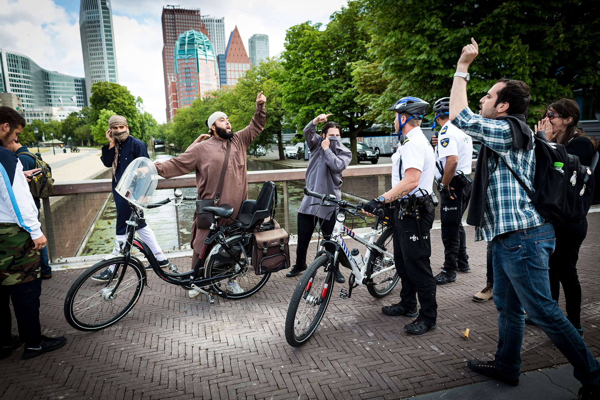 Kleine en grote zaken, Van Dam vliegt overal op af. Hij somt de onderwerpen op zonder hun verband aan te geven. Wat is de noemer, wat is het dat hem drijft? Lichtelijk verbaasd kijkt hij van de vraag op. ‘Geen idee’, volgt het antwoord. De gesprekken om ons heen vullen de invallende stilte. ‘Mag ik daar even over nadenken?’ Eerst het restje koude koffie, dan zegt hij: ‘Ik ben gewoon heel erg geïnteresseerd in alles in mijn omgeving. Enorm nieuwsgierig. Naar onderwerpen, naar verhalen. Ik ben geen persfotograaf, ik voel me fotojournalist. Niet alleen de nieuwsfeiten, het gaat me om het achterliggende verhaal. Ik wil goed gebriefd worden en lees vooraf teksten van journalisten. Zo maak ik een veel beter product, het maakt niet uit over welk onderwerp.’