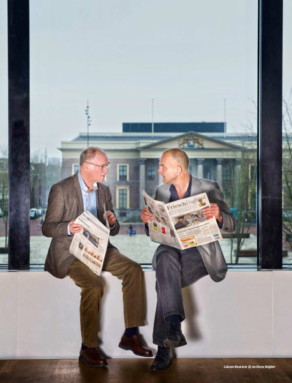 Met als knellender vervolgvraag: zouden de 12.000 abonnees van het Friesch Dagblad de al jaren gestaag dalende oplage van de Leeuwarder niet prachtig compenseren? Snijder, beslist: ‘Een fusie? Nooit. De twee kranten en de regionale omroep, dat is een journalistieke rijkdom die ik koester. Daar ontlenen we alle drie hier in Friesland ons bestaansrecht aan. En dat houdt ons ook voortdurend scherp.’ Met haar twee regionale dagbladen blijft de provincie dus voorlopig uniek. De verbondenheid tussen lezer en krant is door de uitzonderingspositie van de Friese cultuur groter dan elders. ‘We functioneren niet alleen als nieuwsbrenger’, vat Kooistra samen, ‘maar ook als sfeermaker’.