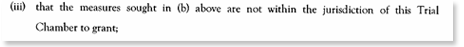 Het Speciale Hof voor Sierra Leone schrijft dat het verzoek buiten de jurisdictie ligt. Het heeft simpelweg geen macht om de door Campbell gezochte maatregelen af te dwingen. Zowel de verdediging als de aanklagers hadden rond het punt van een fotografie-verbod al opgemerkt dat het verzoek om die redenen niet kon worden ingewilligd.