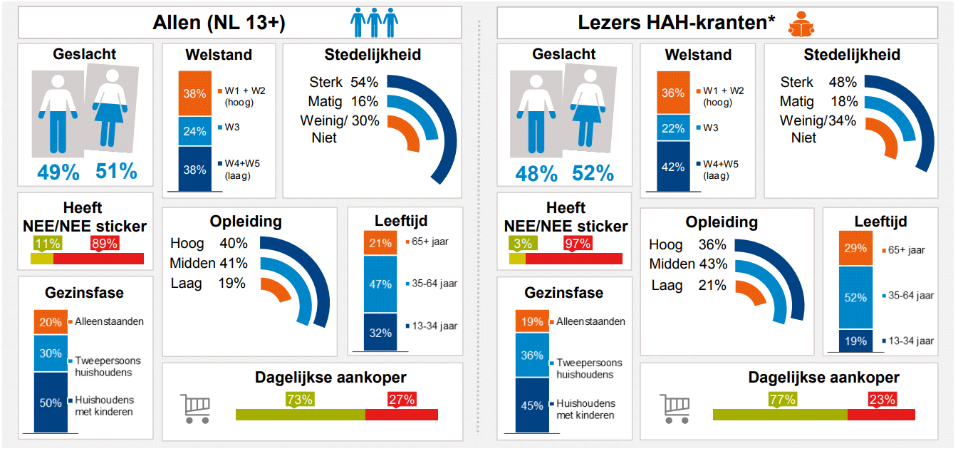 De huis-aan-huisbladen worden in stedelijke gebieden minder goed gelezen dan in de niet- of minder stedelijke gebieden. Meer in de Brochure NOM Regio Monitor 2019 [.pdf]