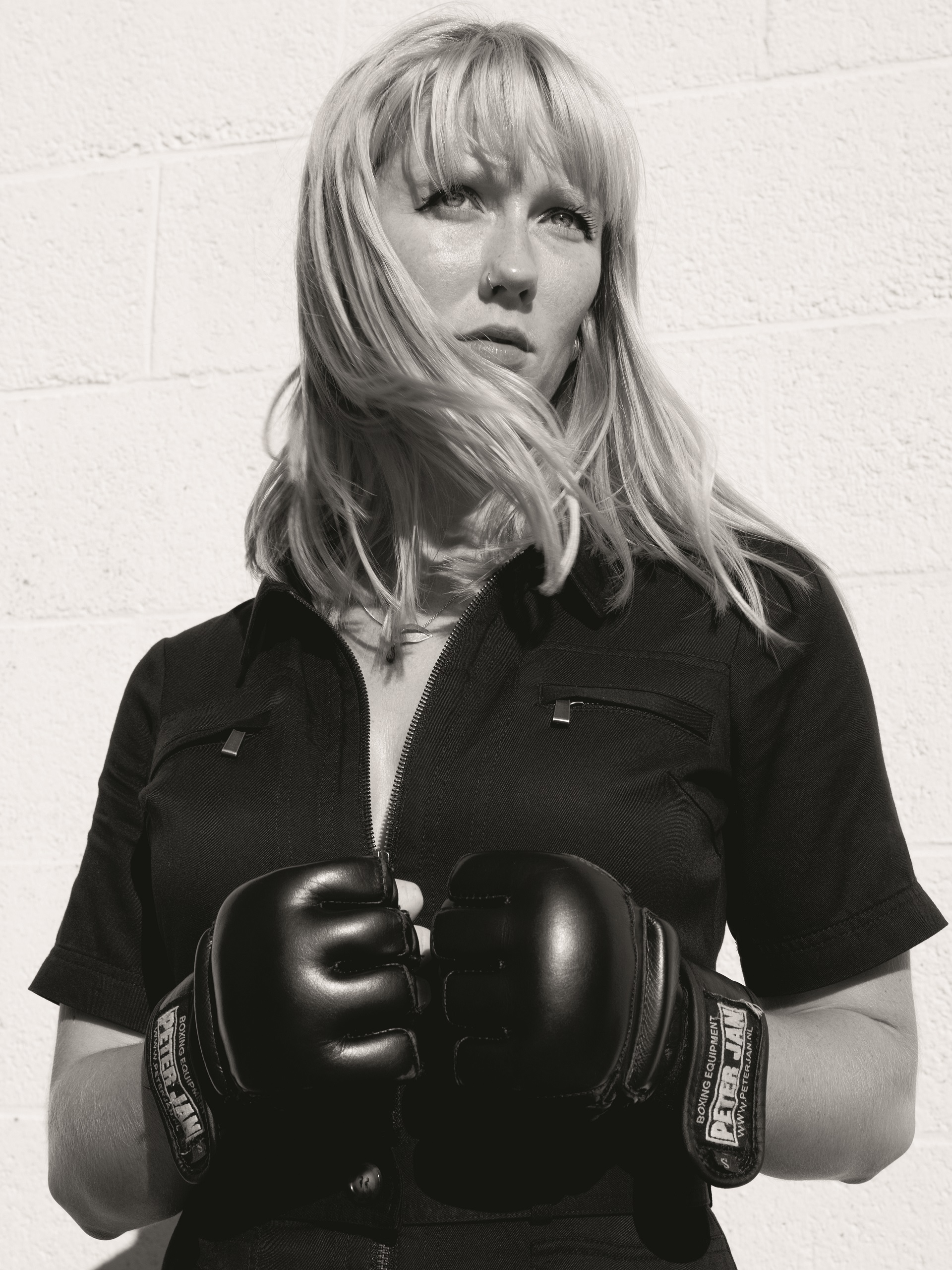 ‘Het klinkt veel heftiger dan het is’, probeert ze haar driften minzaam te vergoelijken. Haar gezicht lijkt inderdaad gaaf en ongeschonden. Behoedzaam neemt ze een slok van haar gemberthee, als ze toch weer op dreef raakt: ‘Het is fantastisch, het helpt me echt. Als ik op de grond lig en een tegenstander tussen mijn benen probeer te killen, dan ben ik echt niet meer aan het nadenken. Och, hoe zit het eigenlijk met de politiek? Welke mening zal ik daarover vormen? Nee, ‘s avonds doe ik mijn bitje in en probeer iemand gewoon zo hard mogelijk te slaan. Niet nadenken, slaan.’ Het vechten heeft haar veel gebracht, zegt ze. Het gaat om vertrouwen, dat je van een ander kan winnen zonder iemand de tyfus in te slaan. ‘Het is ruimte innemen en zelf bepalen of je iemand daarin toelaat. Het is een mening hebben en die kunnen verdedigen. Opkomen voor wat ik denk. Vechten helpt me betere tekeningen te maken.’