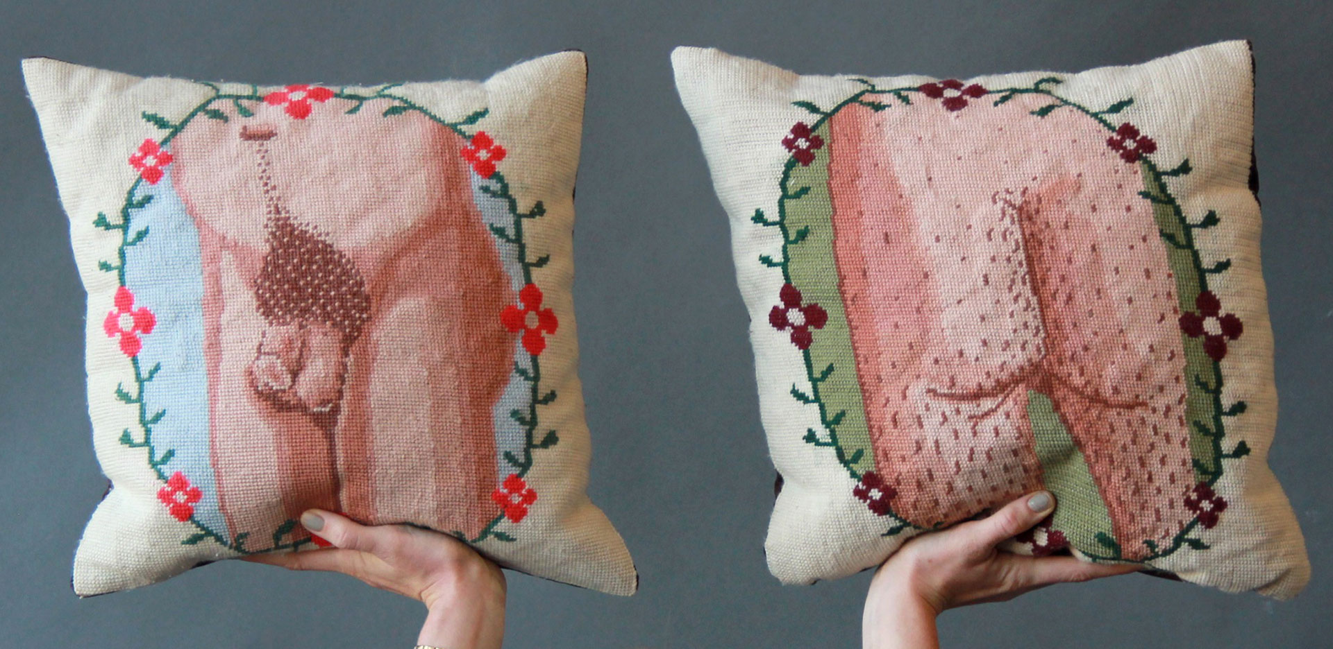 In haar werk verbindt ze hardheid met zachtheid, en die combinatie geeft ze de laatste tijd een emancipatoir vleugje mee. Ze is gaan borduren. Op het gaas ontstaan grimmige vechtscenes, er vloeit bloed. ‘Ik vind het zo suf dat mensen anno 2020 nog altijd in hokjes worden geplaatst’, verklaart ze haar jongste creaties. ‘Vechten mannelijk? Nee, ontzettend vrouwelijk! Borduren is leuk en knokken ook. Een ingewikkelde combi, zeker, maar het zit allemaal in me.’