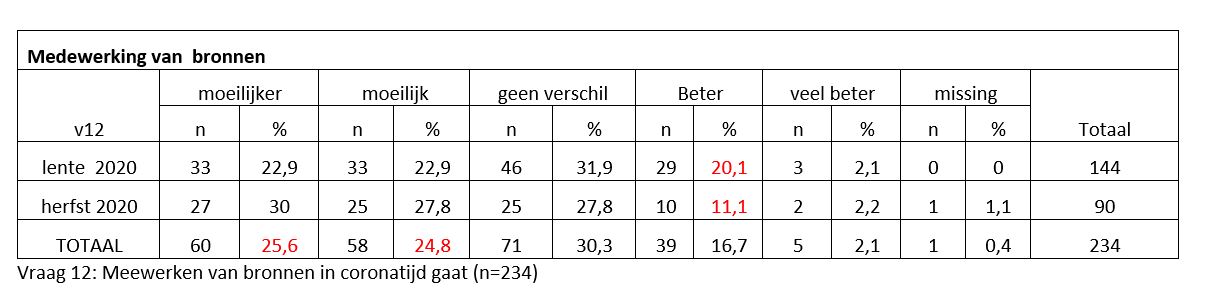 Tabel 1 Medewerking van bronnen. Tekst loopt door onder de tabel