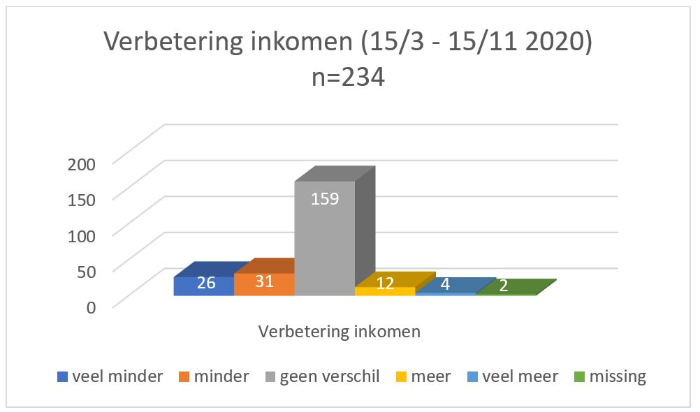 Ondanks dat er harder moest worden gewerkt (27%), steeg het inkomen niet, maar bleef gelijk (68%).