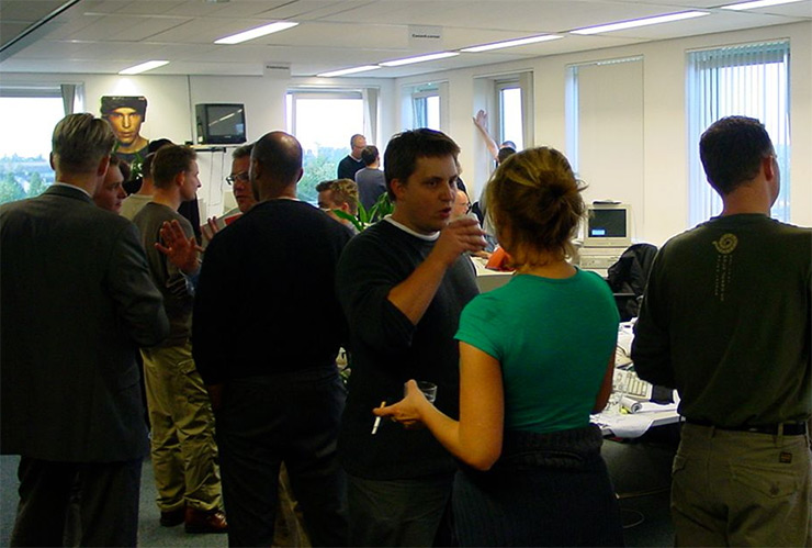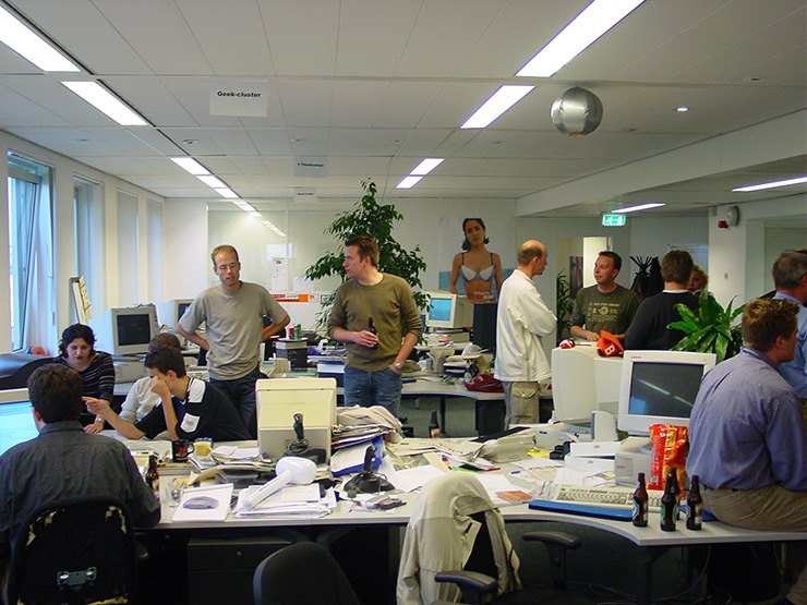 ‘Voor het tijdsbeeld: rond het jaar 2000 hielden IT-bedrijven sollicitatiegesprekken in showrooms. Als je recht uit je ogen keek en niet naar drank rook mocht je meteen een leasebak meenemen. Ik had geen rijbewijs, dus ik ging met de trein naar de Printerweg waar ik na een overhoring over wat html-tags werd aangenomen’, grapt oud-collega Lennart Wesel (48) over zijn start bij Planet.