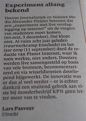 Ondanks de primitieve stand der techniek werd er stevig gepionierd. De Planet-redactie bedacht online journalistieke oplossingen die, als Romeins beton, pas jaren later opnieuw werden uitgevonden. Mensen waren niet zoals nu constant mobiel online.