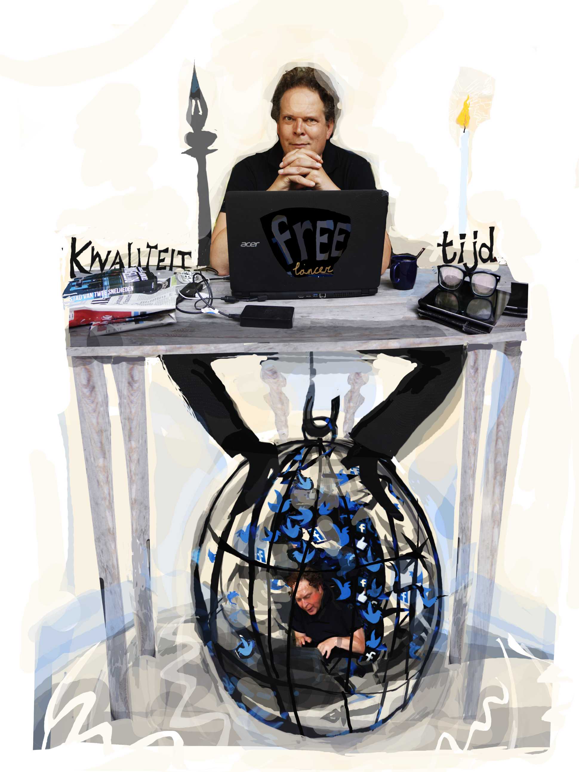 Aan die breuk gingen maanden van gepieker vooraf, vaak in de vorm van letterlijk slapeloze nachten. Hoe moest het financieel verder met ons gezin (vrouw, twee puberdochters)? Zat ik niet ‘gewoon’ in een midlife crisis? Een ordinaire burn-out? Was ik te inflexibel, en dus onvoldoende bereid en in staat om mij aan te passen aan de wetten van de moderne tijd, waar het dwingende ritme van internet langzaam maar zeker tot norm is verheven?