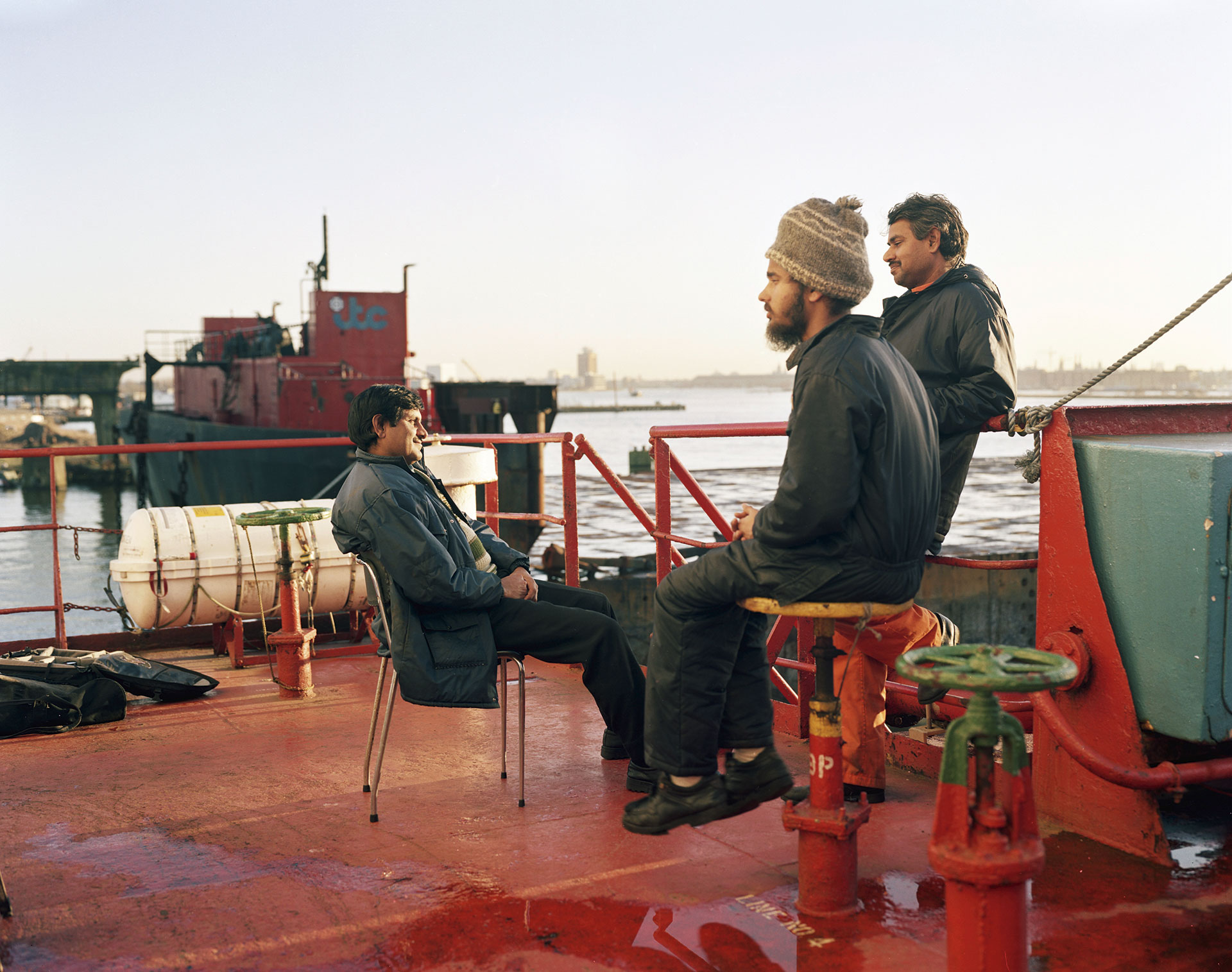 Op kleinere schaal, en veel dichter bij huis, had Wildschut al eerder bij toeval een parallelle wereld ontdekt. In 2003 publiceerde hij samen met collega-fotograaf Raymond Wouda een fotografisch verslag van een verblijf aan boord van de chemische tanker Sandrien LaPaz in de Amsterdamse haven. Ze troffen er 35 Indiase bemanningsleden aan, die geen kant op konden. De Nederlandse overheid weigerde het sloopschip te laten vertrekken, de eigenaar trok zich terug. De 35 mannen verkeerden ruim anderhalf jaar tussen wal en schip. ‘Fascinerend’, herinnert de fotograaf zich. ‘Het was een totaal andere realiteit dan de mijne, vlakbij mijn huis.’ Hij besloot daarna soortgelijke plekken op te zoeken. Zo kwam hij bij Calais, waar zich in 2001 al bestormingen van de Kanaaltunnel hadden voorgedaan.