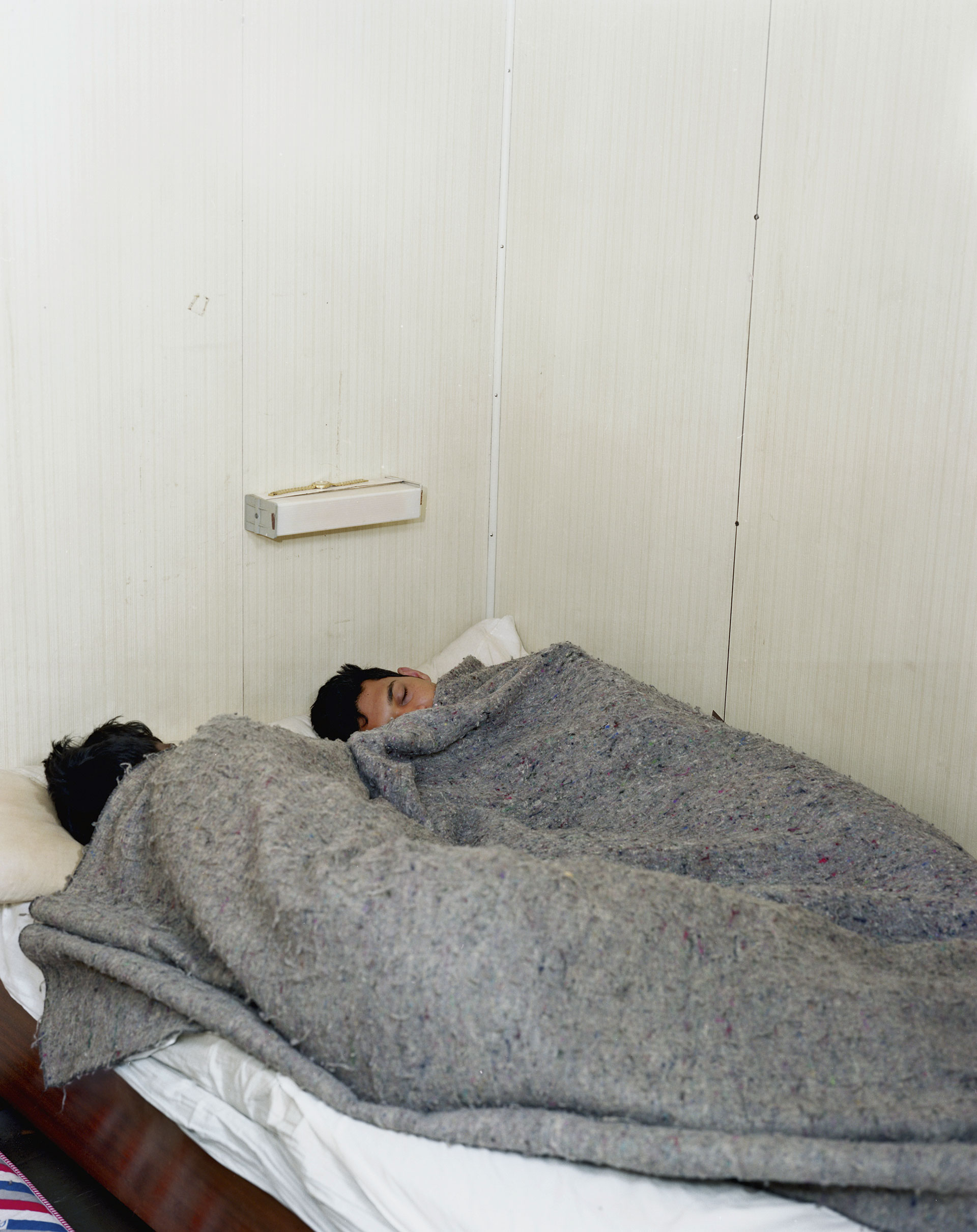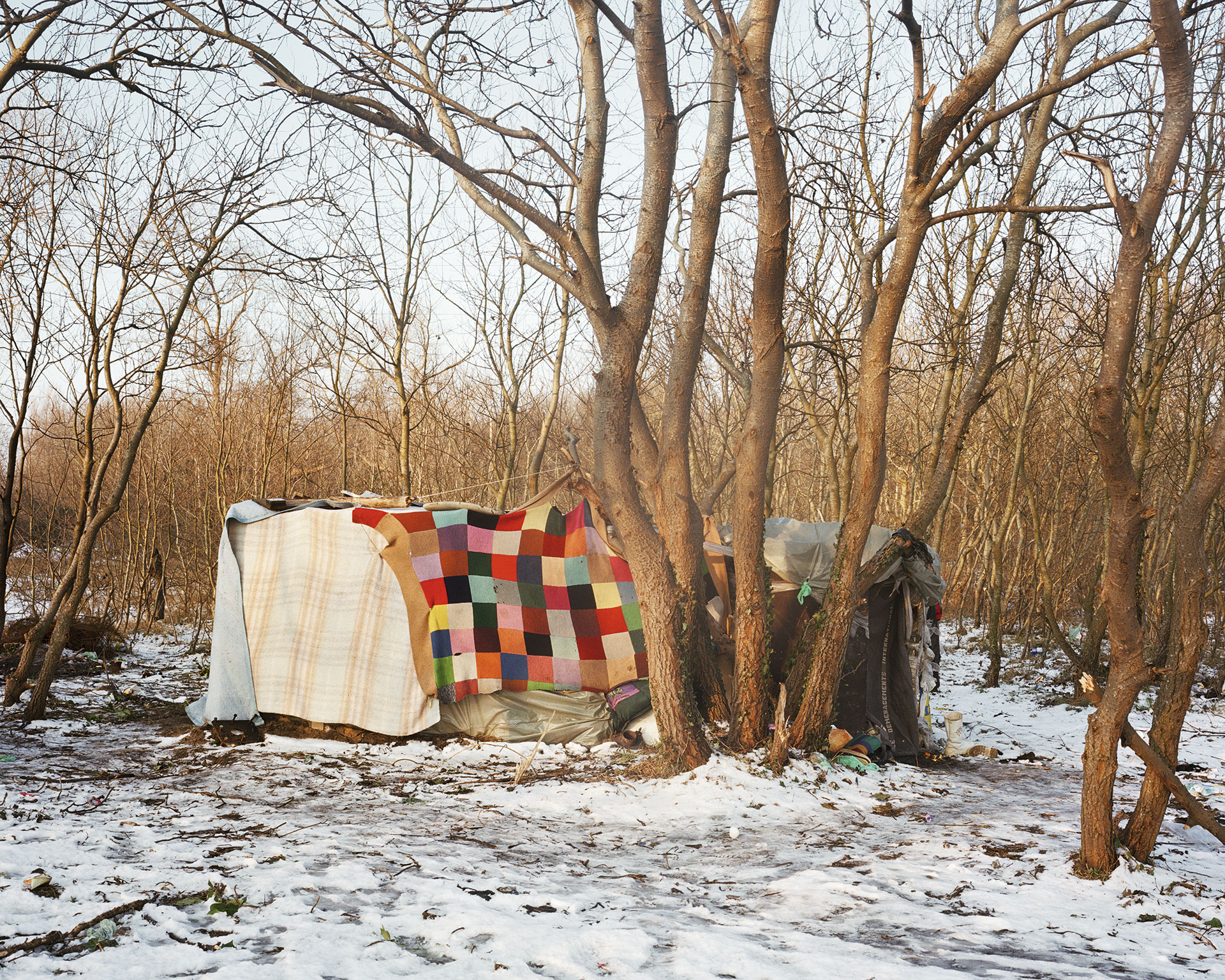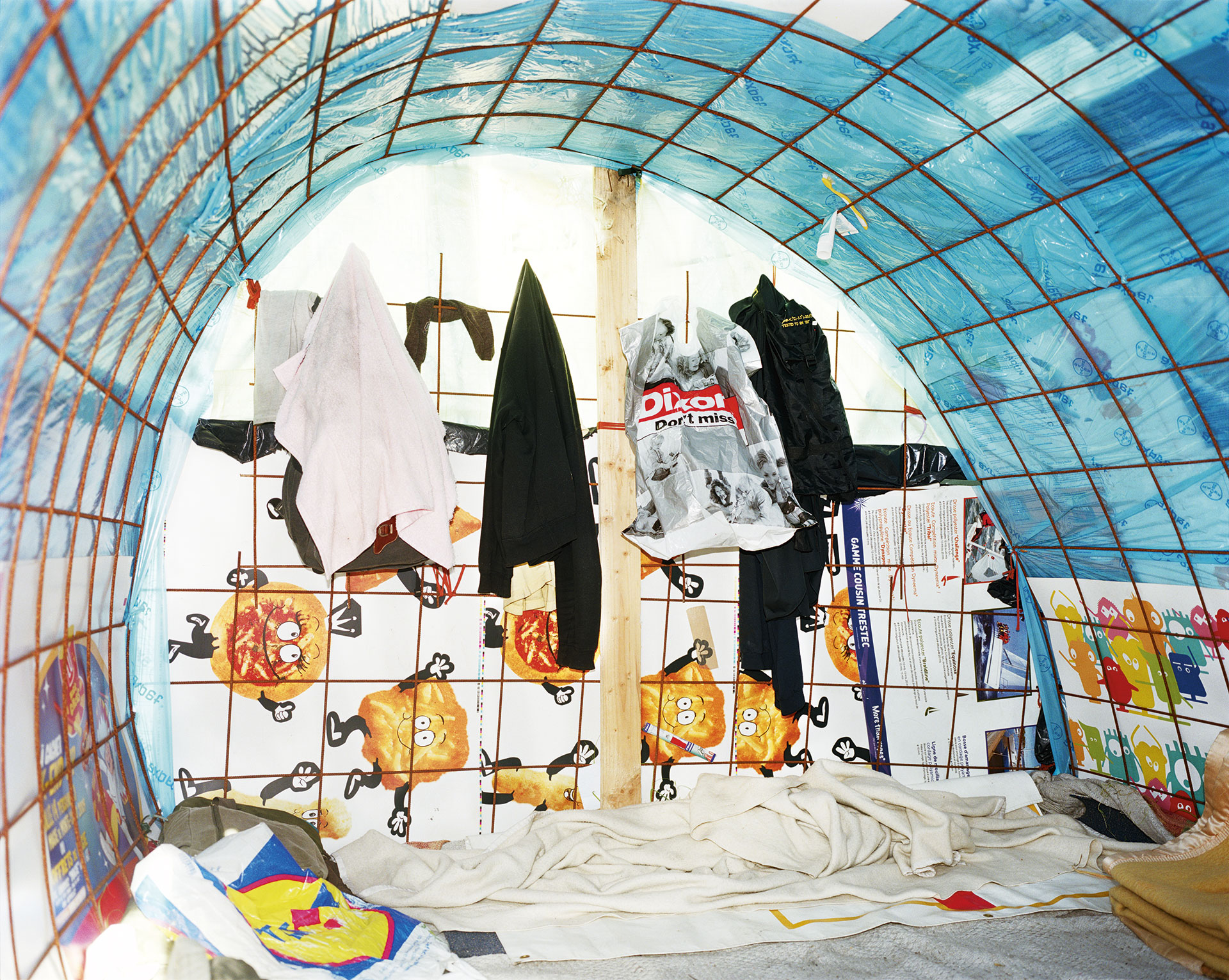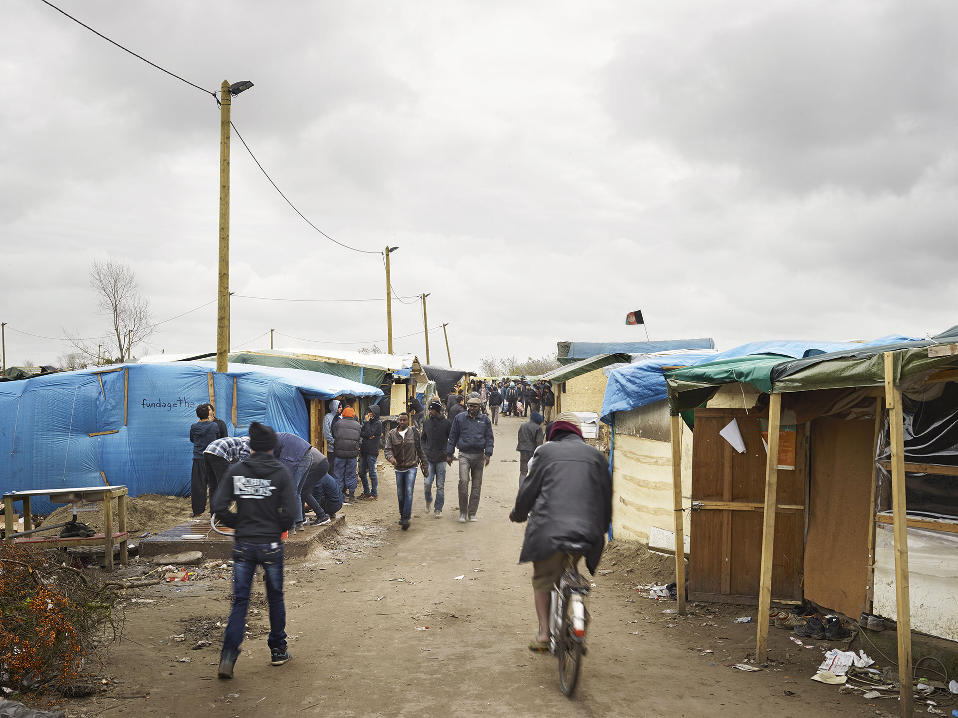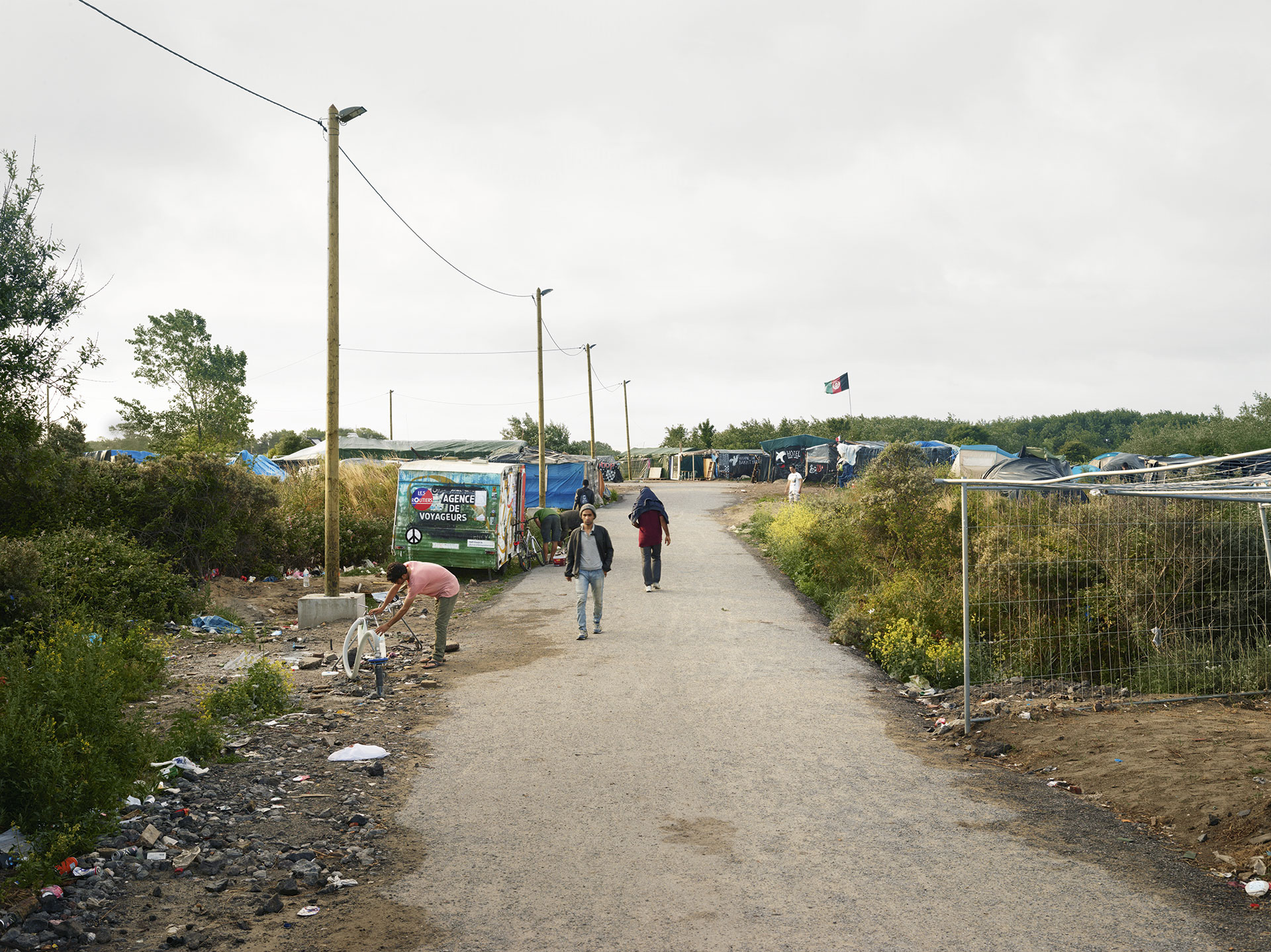 De fotograaf hoefde niet naar Calais terug. Tien jaar eerder had hij er al een boek over gemaakt, ‘Shelter’, dat tot het beste Nederlandse fotoboek zou worden gekroond. Maar de Volkskrant belde: of hij een fotodocument over migratie wilde maken. Ging hij toch weer. In februari 2015 begon de eerste van een eindeloze reeks ontmoetingen en confrontaties. ‘Ik schrok me kapot’, zegt hij aan een lange tafel in het bovenhuis. ‘Dezelfde bossen waarin ik verlaten tentjes had gefotografeerd, stonden weer helemaal vol met nieuwe bouwsels. De Franse overheid had al die tijd opzij gekeken en het allemaal laten gebeuren, terwijl iedereen had kunnen zien dat het volkomen uit de hand zou lopen.’